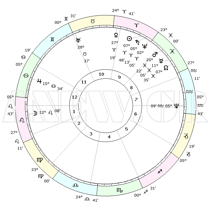 | | ΘΕΣΕΙΣ ΠΛΑΝΗΤΩΝ ΑΣΤΡΟΛΟΓΙΚΟΥ ΧΑΡΤΗ ΤΗΣ ΣΤΙΓΜΗΣ ΑΥΤΗΣ | | | | Πλανήτης | Ζώδιο | Μοίρες | Δεκαήμ. | Σε οίκο | Απόκλιση | | Ακμές των οίκων | | Ηλιος | Κριός | 07°45' | Πρώτο | 10 | 03 N 04 | | 1ος | 17°29' | Καρκίνος | | Σελήνη | Λέων | 11°18' | Δεύτερο | 2 | 19 N 42 | | 2ος | 07°57' | Λέων | | Ερμής | Ιχθείς | 11°03' | Δεύτερο | 9 | 08 S 03 | | 3ος | 01°23' | Παρθένος | | Αφροδίτη | Κριός | 27°14' | Τρίτο | 10 | 09 N 56 | | 4ος | 00°36' | Ζυγός | | Αρης | Ιχθείς | 20°19' | Τρίτο | 9 | 04 S 48 | | 5ος | 06°28' | Σκορπιός | | Δίας | Καρκίνος | 15°34' | Δεύτερο | 12 | 22 N 53 | | 6ος | 14°17' | Τοξότης | | Κρόνος | Κριός | 05°13' | Πρώτο | 10 | 00 N 07 | | 7ος | 17°29' | Αιγόκερως | | Ουρανός | Ταύρος | 28°37' | Τρίτο | 11 | 19 N 41 | | 8ος | 07°57' | Υδροχόος | | Ποσειδώνας | Κριός | 02°05' | Πρώτο | 10 | 00 S 23 | | 9ος | 01°23' | Ιχθείς | | Πλούτωνας | Υδροχόος | 05°09' | Πρώτο | 7 | 22 S 48 | | 10ος | 00°36' | Κριός | | Β. Δεσμός | Ιχθείς | 07°36' | Πρώτο | 9 | 08 S 43 | | 11ος | 06°28' | Ταύρος | | Ωροσκόπος | Καρκίνος | 17°29' | Δεύτερο | | | 12ος | 14°17' | Δίδυμοι | | Μεσουράνημα | Κριός | 00°36' | Πρώτο | | | |
