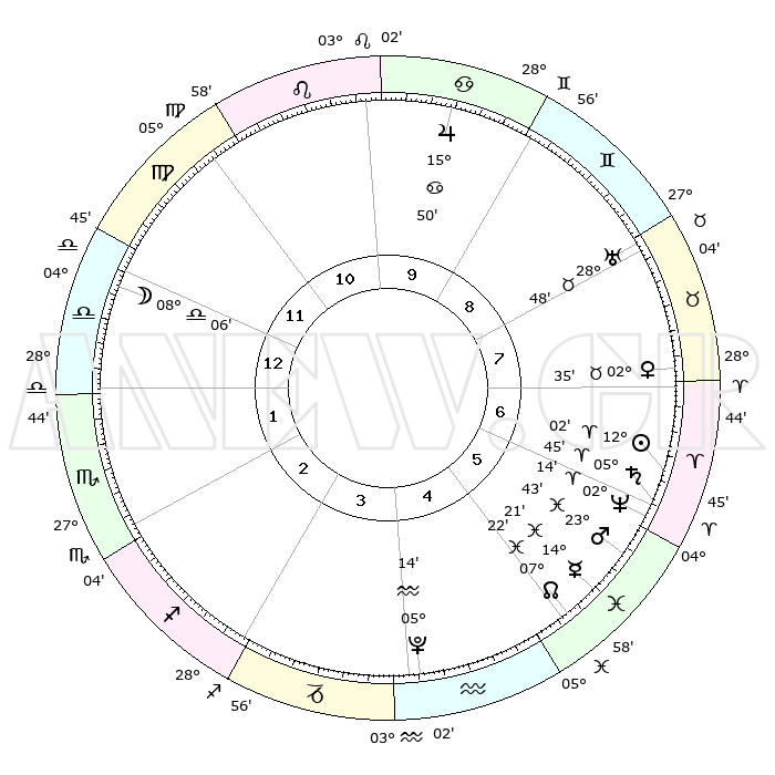 | | ΘΕΣΕΙΣ ΠΛΑΝΗΤΩΝ ΑΣΤΡΟΛΟΓΙΚΟΥ ΧΑΡΤΗ ΤΗΣ ΣΤΙΓΜΗΣ ΑΥΤΗΣ | | | | Πλανήτης | Ζώδιο | Μοίρες | Δεκαήμ. | Σε οίκο | Απόκλιση | | Ακμές των οίκων | | Ηλιος | Κριός | 11°58' | Δεύτερο | 7 | 04 N 44 | | 1ος | 08°59' | Ζυγός | | Σελήνη | Ζυγός | 07°14' | Πρώτο | 12 | 05 S 09 | | 2ος | 06°11' | Σκορπιός | | Ερμής | Ιχθείς | 14°18' | Δεύτερο | 6 | 07 S 29 | | 3ος | 06°58' | Τοξότης | | Αφροδίτη | Ταύρος | 02°30' | Πρώτο | 7 | 11 N 57 | | 4ος | 10°07' | Αιγόκερως | | Αρης | Ιχθείς | 23°40' | Τρίτο | 6 | 03 S 28 | | 5ος | 13°03' | Υδροχόος | | Δίας | Καρκίνος | 15°50' | Δεύτερο | 10 | 22 N 52 | | 6ος | 13°06' | Ιχθείς | | Κρόνος | Κριός | 05°45' | Πρώτο | 6 | 00 N 20 | | 7ος | 08°59' | Κριός | | Ουρανός | Ταύρος | 28°48' | Τρίτο | 8 | 19 N 43 | | 8ος | 06°11' | Ταύρος | | Ποσειδώνας | Κριός | 02°14' | Πρώτο | 6 | 00 S 19 | | 9ος | 06°58' | Δίδυμοι | | Πλούτωνας | Υδροχόος | 05°14' | Πρώτο | 4 | 22 S 47 | | 10ος | 10°07' | Καρκίνος | | Β. Δεσμός | Ιχθείς | 07°22' | Πρώτο | 5 | 08 S 48 | | 11ος | 13°03' | Λέων | | Ωροσκόπος | Ζυγός | 08°59' | Πρώτο | | | 12ος | 13°06' | Παρθένος | | Μεσουράνημα | Καρκίνος | 10°07' | Δεύτερο | | | |