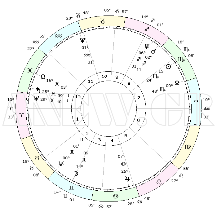 | | ΘΕΣΕΙΣ ΠΛΑΝΗΤΩΝ ΑΣΤΡΟΛΟΓΙΚΟΥ ΧΑΡΤΗ ΤΗΣ ΣΤΙΓΜΗΣ ΑΥΤΗΣ | | | | Πλανήτης | Ζώδιο | Μοίρες | Δεκαήμ. | Σε οίκο | Απόκλιση | | Ακμές των οίκων | | Ηλιος | Σκορπιός | 15°14' | Δεύτερο | 10 | 16 S 24 | | 1ος | 13°49' | Αιγόκερως | | Σελήνη | Δίδυμοι | 11°31' | Δεύτερο | 5 | 27 N 10 | | 2ος | 24°29' | Υδροχόος | | Ερμής | Τοξότης | 06°28' | Πρώτο | 11 | 23 S 59 | | 3ος | 04°40' | Κριός | | Αφροδίτη | Σκορπιός | 00°35' | Πρώτο | 9 | 10 S 23 | | 4ος | 06°07' | Ταύρος | | Αρης | Τοξότης | 02°04' | Πρώτο | 11 | 21 S 01 | | 5ος | 00°28' | Δίδυμοι | | Δίας | Καρκίνος | 25°07' | Τρίτο | 7 | 21 N 12 | | 6ος | 21°43' | Δίδυμοι | | Κρόνος | Ιχθείς | 25°40'R | Τρίτο | 2 | 03 S 58 | | 7ος | 13°49' | Καρκίνος | | Ουρανός | Δίδυμοι | 00°01'R | Πρώτο | 4 | 19 N 57 | | 8ος | 24°29' | Λέων | | Ποσειδώνας | Ιχθείς | 29°40'R | Τρίτο | 2 | 01 S 23 | | 9ος | 04°40' | Ζυγός | | Πλούτωνας | Υδροχόος | 01°31' | Πρώτο | 1 | 23 S 30 | | 10ος | 06°07' | Σκορπιός | | Β. Δεσμός | Ιχθείς | 15°04' | Δεύτερο | 2 | 05 S 53 | | 11ος | 00°28' | Τοξότης | | Ωροσκόπος | Αιγόκερως | 13°49' | Δεύτερο | | | 12ος | 21°43' | Τοξότης | | Μεσουράνημα | Σκορπιός | 06°07' | Πρώτο | | | |