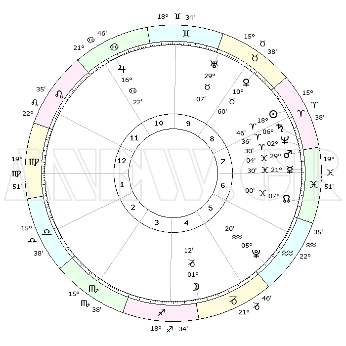 | | ΘΕΣΕΙΣ ΠΛΑΝΗΤΩΝ ΑΣΤΡΟΛΟΓΙΚΟΥ ΧΑΡΤΗ ΤΗΣ ΣΤΙΓΜΗΣ ΑΥΤΗΣ | | | | Πλανήτης | Ζώδιο | Μοίρες | Δεκαήμ. | Σε οίκο | Απόκλιση | | Ακμές των οίκων | | Ηλιος | Κριός | 18°43' | Δεύτερο | 8 | 07 N 20 | | 1ος | 01°08' | Παρθένος | | Σελήνη | Αιγόκερως | 00°26' | Πρώτο | 4 | 28 S 13 | | 2ος | 25°06' | Παρθένος | | Ερμής | Ιχθείς | 21°26' | Τρίτο | 7 | 05 S 26 | | 3ος | 23°53' | Ζυγός | | Αφροδίτη | Ταύρος | 10°55' | Δεύτερο | 9 | 14 N 59 | | 4ος | 26°48' | Σκορπιός | | Αρης | Ιχθείς | 29°01' | Τρίτο | 8 | 01 S 19 | | 5ος | 00°55' | Αιγόκερως | | Δίας | Καρκίνος | 16°21' | Δεύτερο | 11 | 22 N 48 | | 6ος | 02°47' | Υδροχόος | | Κρόνος | Κριός | 06°36' | Πρώτο | 8 | 00 N 39 | | 7ος | 01°08' | Ιχθείς | | Ουρανός | Ταύρος | 29°06' | Τρίτο | 10 | 19 N 47 | | 8ος | 25°06' | Ιχθείς | | Ποσειδώνας | Κριός | 02°29' | Πρώτο | 8 | 00 S 13 | | 9ος | 23°53' | Κριός | | Πλούτωνας | Υδροχόος | 05°20' | Πρώτο | 6 | 22 S 47 | | 10ος | 26°48' | Ταύρος | | Β. Δεσμός | Ιχθείς | 07°00' | Πρώτο | 7 | 08 S 56 | | 11ος | 00°55' | Καρκίνος | | Ωροσκόπος | Παρθένος | 01°08' | Πρώτο | | | 12ος | 02°47' | Λέων | | Μεσουράνημα | Ταύρος | 26°48' | Τρίτο | | | |