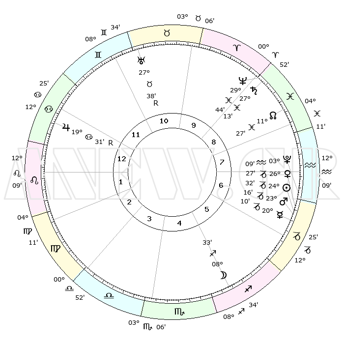 | | ΘΕΣΕΙΣ ΠΛΑΝΗΤΩΝ ΑΣΤΡΟΛΟΓΙΚΟΥ ΧΑΡΤΗ ΤΗΣ ΣΤΙΓΜΗΣ ΑΥΤΗΣ | | | | Πλανήτης | Ζώδιο | Μοίρες | Δεκαήμ. | Σε οίκο | Απόκλιση | | Ακμές των οίκων | | Ηλιος | Αιγόκερως | 23°60' | Τρίτο | 1 | 21 S 18 | | 1ος | 29°53' | Τοξότης | | Σελήνη | Τοξότης | 02°15' | Πρώτο | 11 | 25 S 35 | | 2ος | 06°60' | Υδροχόος | | Ερμής | Αιγόκερως | 19°18' | Δεύτερο | 1 | 23 S 46 | | 3ος | 16°60' | Ιχθείς | | Αφροδίτη | Αιγόκερως | 25°47' | Τρίτο | 1 | 21 S 55 | | 4ος | 20°57' | Κριός | | Αρης | Αιγόκερως | 22°51' | Τρίτο | 1 | 22 S 27 | | 5ος | 17°17' | Ταύρος | | Δίας | Καρκίνος | 19°35'R | Δεύτερο | 7 | 22 N 16 | | 6ος | 09°06' | Δίδυμοι | | Κρόνος | Ιχθείς | 27°11' | Τρίτο | 3 | 03 S 09 | | 7ος | 29°53' | Δίδυμοι | | Ουρανός | Ταύρος | 27°39'R | Τρίτο | 5 | 19 N 26 | | 8ος | 06°60' | Λέων | | Ποσειδώνας | Ιχθείς | 29°43' | Τρίτο | 3 | 01 S 20 | | 9ος | 16°60' | Παρθένος | | Πλούτωνας | Υδροχόος | 03°08' | Πρώτο | 1 | 23 S 08 | | 10ος | 20°57' | Ζυγός | | Β. Δεσμός | Ιχθείς | 11°28' | Δεύτερο | 2 | 07 S 16 | | 11ος | 17°17' | Σκορπιός | | Ωροσκόπος | Τοξότης | 29°53' | Τρίτο | | | 12ος | 09°06' | Τοξότης | | Μεσουράνημα | Ζυγός | 20°57' | Τρίτο | | | |