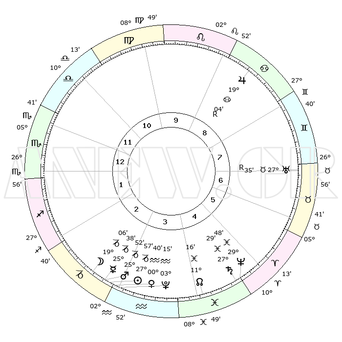 | | ΘΕΣΕΙΣ ΠΛΑΝΗΤΩΝ ΑΣΤΡΟΛΟΓΙΚΟΥ ΧΑΡΤΗ ΤΗΣ ΣΤΙΓΜΗΣ ΑΥΤΗΣ | | | | Πλανήτης | Ζώδιο | Μοίρες | Δεκαήμ. | Σε οίκο | Απόκλιση | | Ακμές των οίκων | | Ηλιος | Αιγόκερως | 27°53' | Τρίτο | 3 | 20 S 35 | | 1ος | 06°25' | Σκορπιός | | Σελήνη | Αιγόκερως | 18°14' | Δεύτερο | 3 | 26 S 11 | | 2ος | 05°14' | Τοξότης | | Ερμής | Αιγόκερως | 25°31' | Τρίτο | 3 | 22 S 56 | | 3ος | 07°45' | Αιγόκερως | | Αφροδίτη | Υδροχόος | 00°35' | Πρώτο | 3 | 21 S 04 | | 4ος | 12°24' | Υδροχόος | | Αρης | Αιγόκερως | 25°48' | Τρίτο | 3 | 21 S 57 | | 5ος | 15°11' | Ιχθείς | | Δίας | Καρκίνος | 19°05'R | Δεύτερο | 9 | 22 N 21 | | 6ος | 13°14' | Κριός | | Κρόνος | Ιχθείς | 27°29' | Τρίτο | 5 | 03 S 02 | | 7ος | 06°25' | Ταύρος | | Ουρανός | Ταύρος | 27°35'R | Τρίτο | 7 | 19 N 26 | | 8ος | 05°14' | Δίδυμοι | | Ποσειδώνας | Ιχθείς | 29°48' | Τρίτο | 5 | 01 S 18 | | 9ος | 07°45' | Καρκίνος | | Πλούτωνας | Υδροχόος | 03°15' | Πρώτο | 3 | 23 S 07 | | 10ος | 12°24' | Λέων | | Β. Δεσμός | Ιχθείς | 11°16' | Δεύτερο | 4 | 07 S 20 | | 11ος | 15°11' | Παρθένος | | Ωροσκόπος | Σκορπιός | 06°25' | Πρώτο | | | 12ος | 13°14' | Ζυγός | | Μεσουράνημα | Λέων | 12°24' | Δεύτερο | | | |