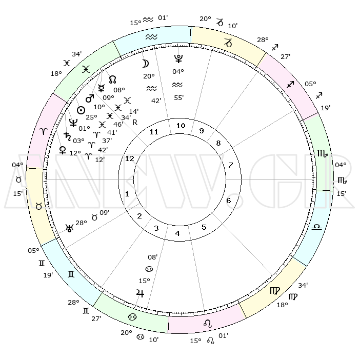 | | ΘΕΣΕΙΣ ΠΛΑΝΗΤΩΝ ΑΣΤΡΟΛΟΓΙΚΟΥ ΧΑΡΤΗ ΤΗΣ ΣΤΙΓΜΗΣ ΑΥΤΗΣ | | | | Πλανήτης | Ζώδιο | Μοίρες | Δεκαήμ. | Σε οίκο | Απόκλιση | | Ακμές των οίκων | | Ηλιος | Ιχθείς | 25°37' | Τρίτο | 12 | 01 S 45 | | 1ος | 28°47' | Ιχθείς | | Σελήνη | Υδροχόος | 19°54' | Δεύτερο | 12 | 16 S 29 | | 2ος | 09°22' | Ταύρος | | Ερμής | Ιχθείς | 09°35'R | Πρώτο | 12 | 06 S 00 | | 3ος | 06°57' | Δίδυμοι | | Αφροδίτη | Κριός | 12°07' | Δεύτερο | 1 | 03 N 52 | | 4ος | 29°19' | Δίδυμοι | | Αρης | Ιχθείς | 10°44' | Δεύτερο | 12 | 08 S 33 | | 5ος | 21°34' | Καρκίνος | | Δίας | Καρκίνος | 15°08' | Δεύτερο | 4 | 22 N 56 | | 6ος | 18°47' | Λέων | | Κρόνος | Κριός | 03°42' | Πρώτο | 1 | 00 S 29 | | 7ος | 28°47' | Παρθένος | | Ουρανός | Ταύρος | 28°09' | Τρίτο | 2 | 19 N 34 | | 8ος | 09°22' | Σκορπιός | | Ποσειδώνας | Κριός | 01°37' | Πρώτο | 1 | 00 S 33 | | 9ος | 06°57' | Τοξότης | | Πλούτωνας | Υδροχόος | 04°55' | Πρώτο | 11 | 22 S 49 | | 10ος | 29°19' | Τοξότης | | Β. Δεσμός | Ιχθείς | 08°14' | Πρώτο | 12 | 08 S 29 | | 11ος | 21°34' | Αιγόκερως | | Ωροσκόπος | Ιχθείς | 28°47' | Τρίτο | | | 12ος | 18°47' | Υδροχόος | | Μεσουράνημα | Τοξότης | 29°19' | Τρίτο | | | |