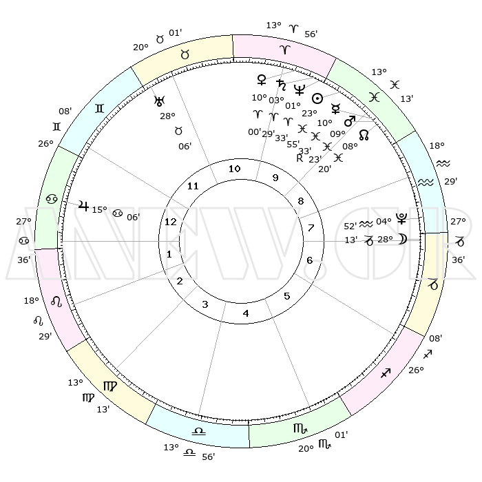 | | ΘΕΣΕΙΣ ΠΛΑΝΗΤΩΝ ΑΣΤΡΟΛΟΓΙΚΟΥ ΧΑΡΤΗ ΤΗΣ ΣΤΙΓΜΗΣ ΑΥΤΗΣ | | | | Πλανήτης | Ζώδιο | Μοίρες | Δεκαήμ. | Σε οίκο | Απόκλιση | | Ακμές των οίκων | | Ηλιος | Ιχθείς | 23°51' | Τρίτο | 10 | 02 S 26 | | 1ος | 11°18' | Καρκίνος | | Σελήνη | Αιγόκερως | 27°32' | Τρίτο | 7 | 24 S 04 | | 2ος | 01°44' | Λέων | | Ερμής | Ιχθείς | 10°36'R | Δεύτερο | 9 | 05 S 14 | | 3ος | 24°29' | Λέων | | Αφροδίτη | Κριός | 09°56' | Πρώτο | 10 | 02 N 57 | | 4ος | 22°40' | Παρθένος | | Αρης | Ιχθείς | 09°20' | Πρώτο | 9 | 09 S 04 | | 5ος | 28°05' | Ζυγός | | Δίας | Καρκίνος | 15°06' | Δεύτερο | 1 | 22 N 56 | | 6ος | 06°50' | Τοξότης | | Κρόνος | Κριός | 03°28' | Πρώτο | 10 | 00 S 34 | | 7ος | 11°18' | Αιγόκερως | | Ουρανός | Ταύρος | 28°06' | Τρίτο | 11 | 19 N 34 | | 8ος | 01°44' | Υδροχόος | | Ποσειδώνας | Κριός | 01°33' | Πρώτο | 10 | 00 S 35 | | 9ος | 24°29' | Υδροχόος | | Πλούτωνας | Υδροχόος | 04°52' | Πρώτο | 8 | 22 S 50 | | 10ος | 22°40' | Ιχθείς | | Β. Δεσμός | Ιχθείς | 08°20' | Πρώτο | 9 | 08 S 27 | | 11ος | 28°05' | Κριός | | Ωροσκόπος | Καρκίνος | 11°18' | Δεύτερο | | | 12ος | 06°50' | Δίδυμοι | | Μεσουράνημα | Ιχθείς | 22°40' | Τρίτο | | | |