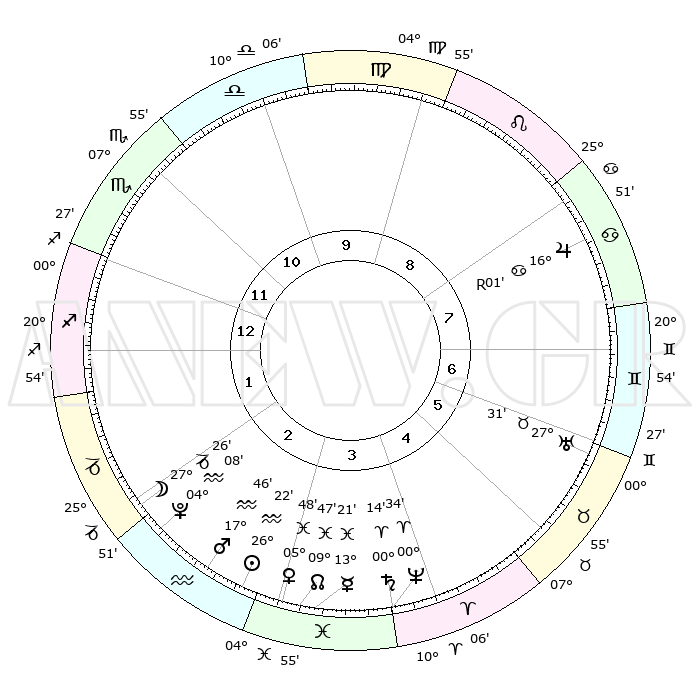 | | ΘΕΣΕΙΣ ΠΛΑΝΗΤΩΝ ΑΣΤΡΟΛΟΓΙΚΟΥ ΧΑΡΤΗ ΤΗΣ ΣΤΙΓΜΗΣ ΑΥΤΗΣ | | | | Πλανήτης | Ζώδιο | Μοίρες | Δεκαήμ. | Σε οίκο | Απόκλιση | | Ακμές των οίκων | | Ηλιος | Υδροχόος | 26°18' | Τρίτο | 3 | 12 S 45 | | 1ος | 02°26' | Τοξότης | | Σελήνη | Αιγόκερως | 26°40' | Τρίτο | 2 | 24 S 18 | | 2ος | 03°55' | Αιγόκερως | | Ερμής | Ιχθείς | 13°16' | Δεύτερο | 3 | 06 S 32 | | 3ος | 10°02' | Υδροχόος | | Αφροδίτη | Ιχθείς | 05°44' | Πρώτο | 3 | 10 S 46 | | 4ος | 16°07' | Ιχθείς | | Αρης | Υδροχόος | 17°43' | Δεύτερο | 3 | 16 S 33 | | 5ος | 16°50' | Κριός | | Δίας | Καρκίνος | 16°02'R | Δεύτερο | 8 | 22 N 48 | | 6ος | 11°33' | Ταύρος | | Κρόνος | Κριός | 00°13' | Πρώτο | 4 | 01 S 53 | | 7ος | 02°26' | Δίδυμοι | | Ουρανός | Ταύρος | 27°31' | Τρίτο | 6 | 19 N 25 | | 8ος | 03°55' | Καρκίνος | | Ποσειδώνας | Κριός | 00°34' | Πρώτο | 4 | 00 S 59 | | 9ος | 10°02' | Λέων | | Πλούτωνας | Υδροχόος | 04°08' | Πρώτο | 2 | 22 S 57 | | 10ος | 16°07' | Παρθένος | | Β. Δεσμός | Ιχθείς | 09°47' | Πρώτο | 3 | 07 S 54 | | 11ος | 16°50' | Ζυγός | | Ωροσκόπος | Τοξότης | 02°26' | Πρώτο | | | 12ος | 11°33' | Σκορπιός | | Μεσουράνημα | Παρθένος | 16°07' | Δεύτερο | | | |