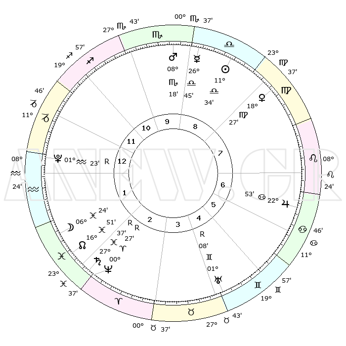 | ΘΕΣΕΙΣ ΠΛΑΝΗΤΩΝ ΑΣΤΡΟΛΟΓΙΚΟΥ ΧΑΡΤΗ ΤΗΣ ΣΤΙΓΜΗΣ ΑΥΤΗΣ | | Πλανήτης | Ζώδιο | Μοίρες | Δεκαήμ. | Σε οίκο | Απόκλιση | | Ακμές των οίκων | Ηλιος | Ζυγός | 11°27' | Δεύτερο | 9 | 04 S 32 | | 1ος | 25°34' | Τοξότης | Σελήνη | Ιχθείς | 04°49' | Πρώτο | 2 | 10 S 53 | | 2ος | 01°37' | Υδροχόος | Ερμής | Ζυγός | 26°34' | Τρίτο | 10 | 10 S 44 | | 3ος | 11°14' | Ιχθείς | Αφροδίτη | Παρθένος | 18°19' | Δεύτερο | 9 | 05 N 52 | | 4ος | 15°50' | Κριός | Αρης | Σκορπιός | 08°13' | Πρώτο | 10 | 14 S 21 | | 5ος | 12°52' | Ταύρος | Δίας | Καρκίνος | 22°52' | Τρίτο | 7 | 21 N 31 | | 6ος | 04°59' | Δίδυμοι | Κρόνος | Ιχθείς | 27°38'R | Τρίτο | 3 | 03 S 15 | | 7ος | 25°34' | Δίδυμοι | Ουρανός | Δίδυμοι | 01°08'R | Πρώτο | 5 | 20 N 10 | | 8ος | 01°37' | Λέων | Ποσειδώνας | Κριός | 00°27'R | Πρώτο | 3 | 01 S 05 | | 9ος | 11°14' | Παρθένος | Πλούτωνας | Υδροχόος | 01°23'R | Πρώτο | 1 | 23 S 32 | | 10ος | 15°50' | Ζυγός | Β. Δεσμός | Ιχθείς | 16°52' | Δεύτερο | 3 | 05 S 11 | | 11ος | 12°52' | Σκορπιός | Ωροσκόπος | Τοξότης | 25°34' | Τρίτο | | | 12ος | 04°59' | Τοξότης | Μεσουράνημα | Ζυγός | 15°50' | Δεύτερο | | | |
