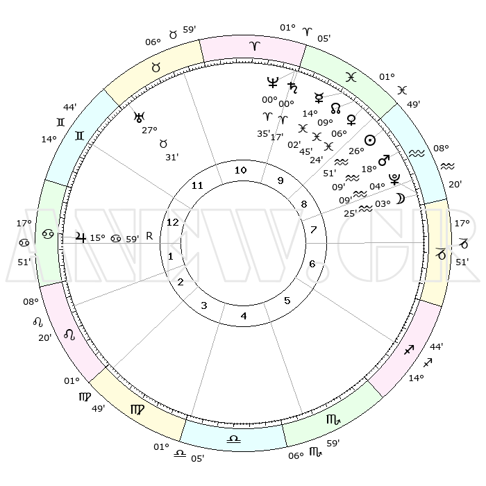 | | ΘΕΣΕΙΣ ΠΛΑΝΗΤΩΝ ΑΣΤΡΟΛΟΓΙΚΟΥ ΧΑΡΤΗ ΤΗΣ ΣΤΙΓΜΗΣ ΑΥΤΗΣ | | | | Πλανήτης | Ζώδιο | Μοίρες | Δεκαήμ. | Σε οίκο | Απόκλιση | | Ακμές των οίκων | | Ηλιος | Υδροχόος | 26°46' | Τρίτο | 9 | 12 S 35 | | 1ος | 24°04' | Δίδυμοι | | Σελήνη | Υδροχόος | 02°29' | Πρώτο | 8 | 22 S 39 | | 2ος | 15°18' | Καρκίνος | | Ερμής | Ιχθείς | 13°56' | Δεύτερο | 10 | 06 S 11 | | 3ος | 06°47' | Λέων | | Αφροδίτη | Ιχθείς | 06°19' | Πρώτο | 10 | 10 S 33 | | 4ος | 02°12' | Παρθένος | | Αρης | Υδροχόος | 18°05' | Δεύτερο | 9 | 16 S 26 | | 5ος | 05°07' | Ζυγός | | Δίας | Καρκίνος | 15°59'R | Δεύτερο | 2 | 22 N 48 | | 6ος | 15°24' | Σκορπιός | | Κρόνος | Κριός | 00°17' | Πρώτο | 10 | 01 S 52 | | 7ος | 24°04' | Τοξότης | | Ουρανός | Ταύρος | 27°31' | Τρίτο | 12 | 19 N 25 | | 8ος | 15°18' | Αιγόκερως | | Ποσειδώνας | Κριός | 00°35' | Πρώτο | 10 | 00 S 58 | | 9ος | 06°47' | Υδροχόος | | Πλούτωνας | Υδροχόος | 04°09' | Πρώτο | 8 | 22 S 56 | | 10ος | 02°12' | Ιχθείς | | Β. Δεσμός | Ιχθείς | 09°46' | Πρώτο | 10 | 07 S 54 | | 11ος | 05°07' | Κριός | | Ωροσκόπος | Δίδυμοι | 24°04' | Τρίτο | | | 12ος | 15°24' | Ταύρος | | Μεσουράνημα | Ιχθείς | 02°12' | Πρώτο | | | |