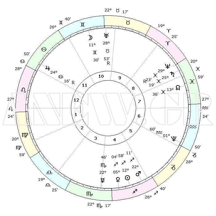 | | ΘΕΣΕΙΣ ΠΛΑΝΗΤΩΝ ΑΣΤΡΟΛΟΓΙΚΟΥ ΧΑΡΤΗ ΤΗΣ ΣΤΙΓΜΗΣ ΑΥΤΗΣ | | | | Πλανήτης | Ζώδιο | Μοίρες | Δεκαήμ. | Σε οίκο | Απόκλιση | | Ακμές των οίκων | | Ηλιος | Τοξότης | 12°56' | Δεύτερο | 4 | 22 S 21 | | 1ος | 18°08' | Λέων | | Σελήνη | Δίδυμοι | 11°01' | Δεύτερο | 10 | 27 N 02 | | 2ος | 10°45' | Παρθένος | | Ερμής | Σκορπιός | 22°45' | Τρίτο | 4 | 15 S 59 | | 3ος | 08°11' | Ζυγός | | Αφροδίτη | Τοξότης | 05°02' | Πρώτο | 4 | 20 S 35 | | 4ος | 10°46' | Σκορπιός | | Αρης | Τοξότης | 22°09' | Τρίτο | 5 | 23 S 54 | | 5ος | 15°49' | Τοξότης | | Δίας | Καρκίνος | 24°16'R | Τρίτο | 12 | 21 N 25 | | 6ος | 18°55' | Αιγόκερως | | Κρόνος | Ιχθείς | 25°19' | Τρίτο | 8 | 04 S 01 | | 7ος | 18°08' | Υδροχόος | | Ουρανός | Ταύρος | 28°53'R | Τρίτο | 10 | 19 N 42 | | 8ος | 10°45' | Ιχθείς | | Ποσειδώνας | Ιχθείς | 29°23'R | Τρίτο | 8 | 01 S 29 | | 9ος | 08°11' | Κριός | | Πλούτωνας | Υδροχόος | 01°59' | Πρώτο | 6 | 23 S 23 | | 10ος | 10°46' | Ταύρος | | Β. Δεσμός | Ιχθείς | 13°36' | Δεύτερο | 8 | 06 S 27 | | 11ος | 15°49' | Δίδυμοι | | Ωροσκόπος | Λέων | 18°08' | Δεύτερο | | | 12ος | 18°55' | Καρκίνος | | Μεσουράνημα | Ταύρος | 10°46' | Δεύτερο | | | |