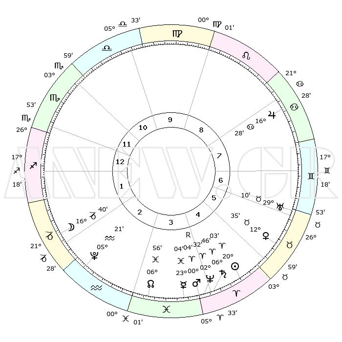 | | ΘΕΣΕΙΣ ΠΛΑΝΗΤΩΝ ΑΣΤΡΟΛΟΓΙΚΟΥ ΧΑΡΤΗ ΤΗΣ ΣΤΙΓΜΗΣ ΑΥΤΗΣ | | | | Πλανήτης | Ζώδιο | Μοίρες | Δεκαήμ. | Σε οίκο | Απόκλιση | | Ακμές των οίκων | | Ηλιος | Κριός | 19°58' | Δεύτερο | 5 | 07 N 48 | | 1ος | 25°24' | Σκορπιός | | Σελήνη | Αιγόκερως | 15°47' | Δεύτερο | 2 | 26 S 34 | | 2ος | 25°56' | Τοξότης | | Ερμής | Ιχθείς | 22°59' | Τρίτο | 4 | 04 S 55 | | 3ος | 00°54' | Υδροχόος | | Αφροδίτη | Ταύρος | 12°29' | Δεύτερο | 6 | 15 N 31 | | 4ος | 06°48' | Ιχθείς | | Αρης | Κριός | 00°01'R | Πρώτο | 4 | 00 S 55 | | 5ος | 08°21' | Κριός | | Δίας | Καρκίνος | 16°28' | Δεύτερο | 8 | 22 N 48 | | 6ος | 04°02' | Ταύρος | | Κρόνος | Κριός | 06°45' | Πρώτο | 4 | 00 N 43 | | 7ος | 25°24' | Ταύρος | | Ουρανός | Ταύρος | 29°10' | Τρίτο | 7 | 19 N 48 | | 8ος | 25°56' | Δίδυμοι | | Ποσειδώνας | Κριός | 02°32' | Πρώτο | 4 | 00 S 12 | | 9ος | 00°54' | Λέων | | Πλούτωνας | Υδροχόος | 05°21' | Πρώτο | 3 | 22 S 47 | | 10ος | 06°48' | Παρθένος | | Β. Δεσμός | Ιχθείς | 06°56' | Πρώτο | 4 | 08 S 58 | | 11ος | 08°21' | Ζυγός | | Ωροσκόπος | Σκορπιός | 25°24' | Τρίτο | | | 12ος | 04°02' | Σκορπιός | | Μεσουράνημα | Παρθένος | 06°48' | Πρώτο | | | |