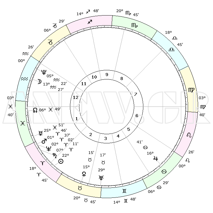 | | ΘΕΣΕΙΣ ΠΛΑΝΗΤΩΝ ΑΣΤΡΟΛΟΓΙΚΟΥ ΧΑΡΤΗ ΤΗΣ ΣΤΙΓΜΗΣ ΑΥΤΗΣ | | | | Πλανήτης | Ζώδιο | Μοίρες | Δεκαήμ. | Σε οίκο | Απόκλιση | | Ακμές των οίκων | | Ηλιος | Κριός | 22°07' | Τρίτο | 3 | 08 N 37 | | 1ος | 27°47' | Αιγόκερως | | Σελήνη | Υδροχόος | 12°31' | Δεύτερο | 1 | 19 S 11 | | 2ος | 11°30' | Ιχθείς | | Ερμής | Ιχθείς | 25°45' | Τρίτο | 2 | 03 S 57 | | 3ος | 20°17' | Κριός | | Αφροδίτη | Ταύρος | 15°10' | Δεύτερο | 3 | 16 N 25 | | 4ος | 19°08' | Ταύρος | | Αρης | Κριός | 01°43' | Πρώτο | 2 | 00 S 14 | | 5ος | 12°04' | Δίδυμοι | | Δίας | Καρκίνος | 16°40' | Δεύτερο | 6 | 22 N 46 | | 6ος | 03°25' | Καρκίνος | | Κρόνος | Κριός | 07°01' | Πρώτο | 2 | 00 N 49 | | 7ος | 27°47' | Καρκίνος | | Ουρανός | Ταύρος | 29°16' | Τρίτο | 4 | 19 N 50 | | 8ος | 11°30' | Παρθένος | | Ποσειδώνας | Κριός | 02°37' | Πρώτο | 2 | 00 S 10 | | 9ος | 20°17' | Ζυγός | | Πλούτωνας | Υδροχόος | 05°22' | Πρώτο | 1 | 22 S 47 | | 10ος | 19°08' | Σκορπιός | | Β. Δεσμός | Ιχθείς | 06°49' | Πρώτο | 1 | 09 S 00 | | 11ος | 12°04' | Τοξότης | | Ωροσκόπος | Αιγόκερως | 27°47' | Τρίτο | | | 12ος | 03°25' | Αιγόκερως | | Μεσουράνημα | Σκορπιός | 19°08' | Δεύτερο | | | |