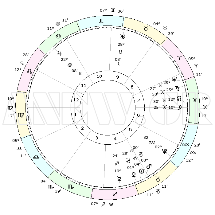 | | ΘΕΣΕΙΣ ΠΛΑΝΗΤΩΝ ΑΣΤΡΟΛΟΓΙΚΟΥ ΧΑΡΤΗ ΤΗΣ ΣΤΙΓΜΗΣ ΑΥΤΗΣ | | | | Πλανήτης | Ζώδιο | Μοίρες | Δεκαήμ. | Σε οίκο | Απόκλιση | | Ακμές των οίκων | | Ηλιος | Αιγόκερως | 04°14' | Πρώτο | 5 | 23 S 22 | | 1ος | 17°27' | Λέων | | Σελήνη | Ιχθείς | 09°23' | Πρώτο | 7 | 08 S 12 | | 2ος | 09°60' | Παρθένος | | Ερμής | Τοξότης | 19°17' | Δεύτερο | 5 | 22 S 50 | | 3ος | 07°20' | Ζυγός | | Αφροδίτη | Αιγόκερως | 01°23' | Πρώτο | 5 | 23 S 42 | | 4ος | 09°54' | Σκορπιός | | Αρης | Αιγόκερως | 07°57' | Πρώτο | 5 | 24 S 03 | | 5ος | 14°60' | Τοξότης | | Δίας | Καρκίνος | 22°09'R | Τρίτο | 12 | 21 N 50 | | 6ος | 18°11' | Αιγόκερως | | Κρόνος | Ιχθείς | 25°57' | Τρίτο | 8 | 03 S 42 | | 7ος | 17°27' | Υδροχόος | | Ουρανός | Ταύρος | 28°08'R | Τρίτο | 10 | 19 N 33 | | 8ος | 09°60' | Ιχθείς | | Ποσειδώνας | Ιχθείς | 29°26' | Τρίτο | 8 | 01 S 27 | | 9ος | 07°20' | Κριός | | Πλούτωνας | Υδροχόος | 02°32' | Πρώτο | 6 | 23 S 15 | | 10ος | 09°54' | Ταύρος | | Β. Δεσμός | Ιχθείς | 12°30' | Δεύτερο | 8 | 06 S 52 | | 11ος | 14°60' | Δίδυμοι | | Ωροσκόπος | Λέων | 17°27' | Δεύτερο | | | 12ος | 18°11' | Καρκίνος | | Μεσουράνημα | Ταύρος | 09°54' | Πρώτο | | | |