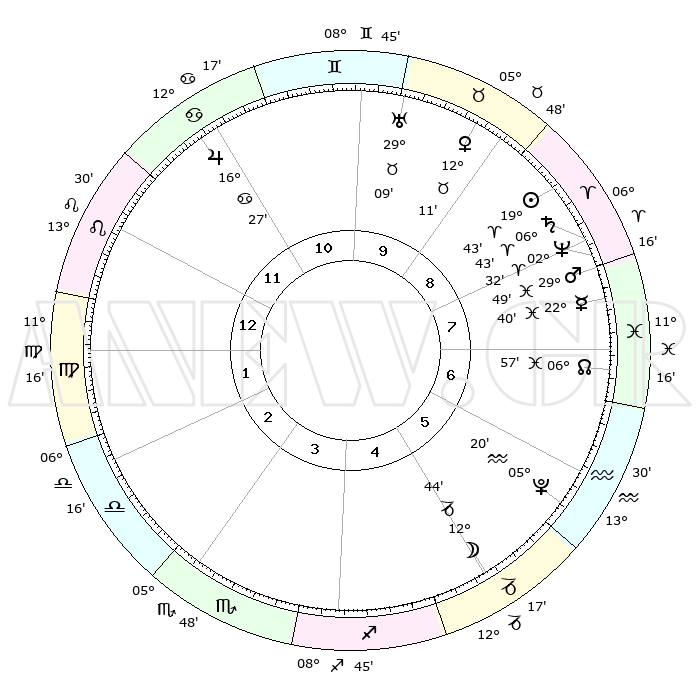 | | ΘΕΣΕΙΣ ΠΛΑΝΗΤΩΝ ΑΣΤΡΟΛΟΓΙΚΟΥ ΧΑΡΤΗ ΤΗΣ ΣΤΙΓΜΗΣ ΑΥΤΗΣ | | | | Πλανήτης | Ζώδιο | Μοίρες | Δεκαήμ. | Σε οίκο | Απόκλιση | | Ακμές των οίκων | | Ηλιος | Κριός | 19°40' | Δεύτερο | 9 | 07 N 41 | | 1ος | 24°15' | Λέων | | Σελήνη | Αιγόκερως | 12°03' | Δεύτερο | 5 | 27 S 10 | | 2ος | 17°30' | Παρθένος | | Ερμής | Ιχθείς | 22°36' | Τρίτο | 8 | 05 S 03 | | 3ος | 15°37' | Ζυγός | | Αφροδίτη | Ταύρος | 12°07' | Δεύτερο | 9 | 15 N 24 | | 4ος | 18°26' | Σκορπιός | | Αρης | Ιχθείς | 29°46' | Τρίτο | 8 | 01 S 01 | | 5ος | 23°02' | Τοξότης | | Δίας | Καρκίνος | 16°26' | Δεύτερο | 11 | 22 N 48 | | 6ος | 25°29' | Αιγόκερως | | Κρόνος | Κριός | 06°43' | Πρώτο | 8 | 00 N 42 | | 7ος | 24°15' | Υδροχόος | | Ουρανός | Ταύρος | 29°09' | Τρίτο | 10 | 19 N 48 | | 8ος | 17°30' | Ιχθείς | | Ποσειδώνας | Κριός | 02°32' | Πρώτο | 8 | 00 S 12 | | 9ος | 15°37' | Κριός | | Πλούτωνας | Υδροχόος | 05°20' | Πρώτο | 6 | 22 S 47 | | 10ος | 18°26' | Ταύρος | | Β. Δεσμός | Ιχθείς | 06°57' | Πρώτο | 7 | 08 S 57 | | 11ος | 23°02' | Δίδυμοι | | Ωροσκόπος | Λέων | 24°15' | Τρίτο | | | 12ος | 25°29' | Καρκίνος | | Μεσουράνημα | Ταύρος | 18°26' | Δεύτερο | | | |