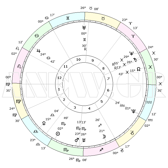 | | ΘΕΣΕΙΣ ΠΛΑΝΗΤΩΝ ΑΣΤΡΟΛΟΓΙΚΟΥ ΧΑΡΤΗ ΤΗΣ ΣΤΙΓΜΗΣ ΑΥΤΗΣ | | | | Πλανήτης | Ζώδιο | Μοίρες | Δεκαήμ. | Σε οίκο | Απόκλιση | | Ακμές των οίκων | | Ηλιος | Σκορπιός | 02°24' | Πρώτο | 7 | 12 S 18 | | 1ος | 22°56' | Ιχθείς | | Σελήνη | Τοξότης | 16°33' | Δεύτερο | 9 | 27 S 51 | | 2ος | 04°50' | Ταύρος | | Ερμής | Σκορπιός | 25°45' | Τρίτο | 8 | 21 S 46 | | 3ος | 03°22' | Δίδυμοι | | Αφροδίτη | Ζυγός | 14°33' | Δεύτερο | 7 | 04 S 20 | | 4ος | 26°01' | Δίδυμοι | | Αρης | Σκορπιός | 22°55' | Τρίτο | 8 | 18 S 49 | | 5ος | 18°03' | Καρκίνος | | Δίας | Καρκίνος | 24°41' | Τρίτο | 5 | 21 N 15 | | 6ος | 14°25' | Λέων | | Κρόνος | Ιχθείς | 26°15'R | Τρίτο | 1 | 03 S 46 | | 7ος | 22°56' | Παρθένος | | Ουρανός | Δίδυμοι | 00°31'R | Πρώτο | 2 | 20 N 03 | | 8ος | 04°50' | Σκορπιός | | Ποσειδώνας | Ιχθείς | 29°55'R | Τρίτο | 1 | 01 S 17 | | 9ος | 03°22' | Τοξότης | | Πλούτωνας | Υδροχόος | 01°24' | Πρώτο | 11 | 23 S 32 | | 10ος | 26°01' | Τοξότης | | Β. Δεσμός | Ιχθείς | 15°44' | Δεύτερο | 12 | 05 S 37 | | 11ος | 18°03' | Αιγόκερως | | Ωροσκόπος | Ιχθείς | 22°56' | Τρίτο | | | 12ος | 14°25' | Υδροχόος | | Μεσουράνημα | Τοξότης | 26°01' | Τρίτο | | | |