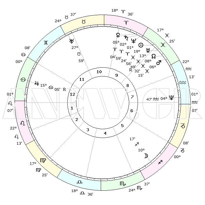 | | ΘΕΣΕΙΣ ΠΛΑΝΗΤΩΝ ΑΣΤΡΟΛΟΓΙΚΟΥ ΧΑΡΤΗ ΤΗΣ ΣΤΙΓΜΗΣ ΑΥΤΗΣ | | | | Πλανήτης | Ζώδιο | Μοίρες | Δεκαήμ. | Σε οίκο | Απόκλιση | | Ακμές των οίκων | | Ηλιος | Ιχθείς | 19°53' | Δεύτερο | 9 | 04 S 00 | | 1ος | 13°56' | Καρκίνος | | Σελήνη | Τοξότης | 09°36' | Πρώτο | 5 | 27 S 06 | | 2ος | 04°21' | Λέων | | Ερμής | Ιχθείς | 13°53'R | Δεύτερο | 9 | 03 S 16 | | 3ος | 27°23' | Λέων | | Αφροδίτη | Κριός | 04°60' | Πρώτο | 10 | 00 N 55 | | 4ος | 26°01' | Παρθένος | | Αρης | Ιχθείς | 06°12' | Πρώτο | 9 | 10 S 15 | | 5ος | 01°39' | Σκορπιός | | Δίας | Καρκίνος | 15°05'R | Δεύτερο | 1 | 22 N 56 | | 6ος | 10°02' | Τοξότης | | Κρόνος | Κριός | 02°59' | Πρώτο | 10 | 00 S 46 | | 7ος | 13°56' | Αιγόκερως | | Ουρανός | Ταύρος | 27°58' | Τρίτο | 11 | 19 N 32 | | 8ος | 04°21' | Υδροχόος | | Ποσειδώνας | Κριός | 01°24' | Πρώτο | 10 | 00 S 39 | | 9ος | 27°23' | Υδροχόος | | Πλούτωνας | Υδροχόος | 04°47' | Πρώτο | 8 | 22 S 50 | | 10ος | 26°01' | Ιχθείς | | Β. Δεσμός | Ιχθείς | 08°33' | Πρώτο | 9 | 08 S 22 | | 11ος | 01°39' | Ταύρος | | Ωροσκόπος | Καρκίνος | 13°56' | Δεύτερο | | | 12ος | 10°02' | Δίδυμοι | | Μεσουράνημα | Ιχθείς | 26°01' | Τρίτο | | | |