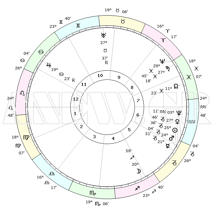 | | ΘΕΣΕΙΣ ΠΛΑΝΗΤΩΝ ΑΣΤΡΟΛΟΓΙΚΟΥ ΧΑΡΤΗ ΤΗΣ ΣΤΙΓΜΗΣ ΑΥΤΗΣ | | | | Πλανήτης | Ζώδιο | Μοίρες | Δεκαήμ. | Σε οίκο | Απόκλιση | | Ακμές των οίκων | | Ηλιος | Αιγόκερως | 25°31' | Τρίτο | 6 | 21 S 02 | | 1ος | 04°41' | Λέων | | Σελήνη | Τοξότης | 20°09' | Τρίτο | 5 | 28 S 06 | | 2ος | 26°04' | Λέων | | Ερμής | Αιγόκερως | 21°44' | Τρίτο | 6 | 23 S 29 | | 3ος | 21°45' | Παρθένος | | Αφροδίτη | Αιγόκερως | 27°41' | Τρίτο | 6 | 21 S 36 | | 4ος | 23°20' | Ζυγός | | Αρης | Αιγόκερως | 24°01' | Τρίτο | 6 | 22 S 16 | | 5ος | 29°13' | Σκορπιός | | Δίας | Καρκίνος | 19°23'R | Δεύτερο | 12 | 22 N 18 | | 6ος | 04°10' | Αιγόκερως | | Κρόνος | Ιχθείς | 27°18' | Τρίτο | 9 | 03 S 06 | | 7ος | 04°41' | Υδροχόος | | Ουρανός | Ταύρος | 27°37'R | Τρίτο | 10 | 19 N 26 | | 8ος | 26°04' | Υδροχόος | | Ποσειδώνας | Ιχθείς | 29°45' | Τρίτο | 9 | 01 S 19 | | 9ος | 21°45' | Ιχθείς | | Πλούτωνας | Υδροχόος | 03°11' | Πρώτο | 6 | 23 S 07 | | 10ος | 23°20' | Κριός | | Β. Δεσμός | Ιχθείς | 11°24' | Δεύτερο | 8 | 07 S 17 | | 11ος | 29°13' | Ταύρος | | Ωροσκόπος | Λέων | 04°41' | Πρώτο | | | 12ος | 04°10' | Καρκίνος | | Μεσουράνημα | Κριός | 23°20' | Τρίτο | | | |