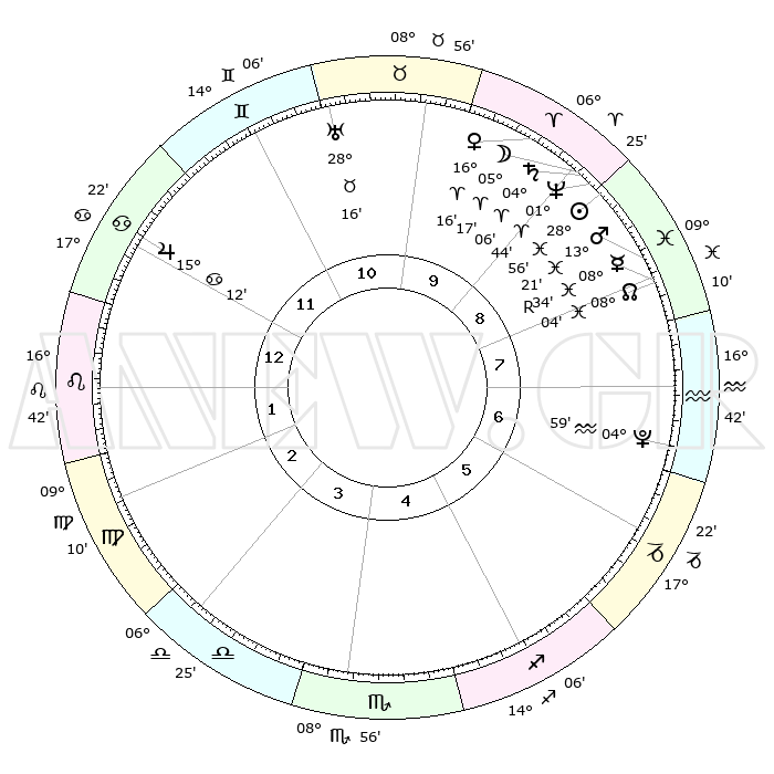 | | ΘΕΣΕΙΣ ΠΛΑΝΗΤΩΝ ΑΣΤΡΟΛΟΓΙΚΟΥ ΧΑΡΤΗ ΤΗΣ ΣΤΙΓΜΗΣ ΑΥΤΗΣ | | | | Πλανήτης | Ζώδιο | Μοίρες | Δεκαήμ. | Σε οίκο | Απόκλιση | | Ακμές των οίκων | | Ηλιος | Ιχθείς | 28°53' | Τρίτο | 9 | 00 S 27 | | 1ος | 27°56' | Καρκίνος | | Σελήνη | Κριός | 04°22' | Πρώτο | 9 | 03 N 48 | | 2ος | 18°51' | Λέων | | Ερμής | Ιχθείς | 08°35'R | Πρώτο | 8 | 07 S 08 | | 3ος | 13°37' | Παρθένος | | Αφροδίτη | Κριός | 16°11' | Δεύτερο | 10 | 05 N 32 | | 4ος | 14°23' | Ζυγός | | Αρης | Ιχθείς | 13°18' | Δεύτερο | 8 | 07 S 33 | | 5ος | 20°28' | Σκορπιός | | Δίας | Καρκίνος | 15°12' | Δεύτερο | 12 | 22 N 56 | | 6ος | 26°31' | Τοξότης | | Κρόνος | Κριός | 04°06' | Πρώτο | 9 | 00 S 19 | | 7ος | 27°56' | Αιγόκερως | | Ουρανός | Ταύρος | 28°16' | Τρίτο | 11 | 19 N 36 | | 8ος | 18°51' | Υδροχόος | | Ποσειδώνας | Κριός | 01°44' | Πρώτο | 9 | 00 S 30 | | 9ος | 13°37' | Ιχθείς | | Πλούτωνας | Υδροχόος | 04°59' | Πρώτο | 7 | 22 S 49 | | 10ος | 14°23' | Κριός | | Β. Δεσμός | Ιχθείς | 08°04' | Πρώτο | 8 | 08 S 33 | | 11ος | 20°28' | Ταύρος | | Ωροσκόπος | Καρκίνος | 27°56' | Τρίτο | | | 12ος | 26°31' | Δίδυμοι | | Μεσουράνημα | Κριός | 14°23' | Δεύτερο | | | |