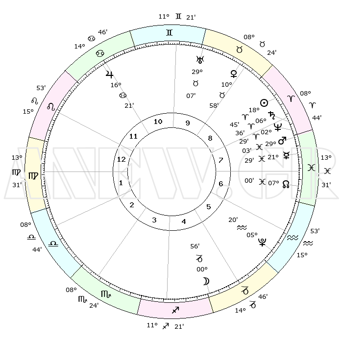 | | ΘΕΣΕΙΣ ΠΛΑΝΗΤΩΝ ΑΣΤΡΟΛΟΓΙΚΟΥ ΧΑΡΤΗ ΤΗΣ ΣΤΙΓΜΗΣ ΑΥΤΗΣ | | | | Πλανήτης | Ζώδιο | Μοίρες | Δεκαήμ. | Σε οίκο | Απόκλιση | | Ακμές των οίκων | | Ηλιος | Κριός | 18°42' | Δεύτερο | 9 | 07 N 19 | | 1ος | 26°17' | Λέων | | Σελήνη | Αιγόκερως | 00°14' | Πρώτο | 5 | 28 S 13 | | 2ος | 19°45' | Παρθένος | | Ερμής | Ιχθείς | 21°25' | Τρίτο | 8 | 05 S 27 | | 3ος | 18°04' | Ζυγός | | Αφροδίτη | Ταύρος | 10°54' | Δεύτερο | 9 | 14 N 59 | | 4ος | 20°56' | Σκορπιός | | Αρης | Ιχθείς | 29°00' | Τρίτο | 8 | 01 S 20 | | 5ος | 25°23' | Τοξότης | | Δίας | Καρκίνος | 16°21' | Δεύτερο | 11 | 22 N 48 | | 6ος | 27°39' | Αιγόκερως | | Κρόνος | Κριός | 06°36' | Πρώτο | 8 | 00 N 39 | | 7ος | 26°17' | Υδροχόος | | Ουρανός | Ταύρος | 29°06' | Τρίτο | 10 | 19 N 47 | | 8ος | 19°45' | Ιχθείς | | Ποσειδώνας | Κριός | 02°29' | Πρώτο | 8 | 00 S 13 | | 9ος | 18°04' | Κριός | | Πλούτωνας | Υδροχόος | 05°20' | Πρώτο | 6 | 22 S 47 | | 10ος | 20°56' | Ταύρος | | Β. Δεσμός | Ιχθείς | 07°00' | Πρώτο | 7 | 08 S 56 | | 11ος | 25°23' | Δίδυμοι | | Ωροσκόπος | Λέων | 26°17' | Τρίτο | | | 12ος | 27°39' | Καρκίνος | | Μεσουράνημα | Ταύρος | 20°56' | Τρίτο | | | |