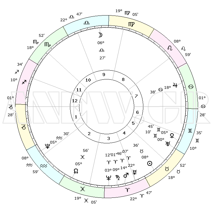 | | ΘΕΣΕΙΣ ΠΛΑΝΗΤΩΝ ΑΣΤΡΟΛΟΓΙΚΟΥ ΧΑΡΤΗ ΤΗΣ ΣΤΙΓΜΗΣ ΑΥΤΗΣ | | | | Πλανήτης | Ζώδιο | Μοίρες | Δεκαήμ. | Σε οίκο | Απόκλιση | | Ακμές των οίκων | | Ηλιος | Ταύρος | 08°32' | Πρώτο | 5 | 14 N 21 | | 1ος | 10°16' | Τοξότης | | Σελήνη | Ζυγός | 05°37' | Πρώτο | 10 | 04 S 27 | | 2ος | 13°03' | Αιγόκερως | | Ερμής | Κριός | 21°60' | Τρίτο | 4 | 06 N 35 | | 3ος | 20°29' | Υδροχόος | | Αφροδίτη | Δίδυμοι | 05°40' | Πρώτο | 6 | 22 N 02 | | 4ος | 26°28' | Ιχθείς | | Αρης | Κριός | 14°43' | Δεύτερο | 4 | 04 N 58 | | 5ος | 26°02' | Κριός | | Δίας | Καρκίνος | 18°37' | Δεύτερο | 8 | 22 N 31 | | 6ος | 19°44' | Ταύρος | | Κρόνος | Κριός | 09°01' | Πρώτο | 4 | 01 N 35 | | 7ος | 10°16' | Δίδυμοι | | Ουρανός | Δίδυμοι | 00°09' | Πρώτο | 6 | 20 N 01 | | 8ος | 13°03' | Καρκίνος | | Ποσειδώνας | Κριός | 03°12' | Πρώτο | 4 | 00 N 04 | | 9ος | 20°29' | Λέων | | Πλούτωνας | Υδροχόος | 05°30' | Πρώτο | 2 | 22 S 48 | | 10ος | 26°28' | Παρθένος | | Β. Δεσμός | Ιχθείς | 05°56' | Πρώτο | 3 | 09 S 20 | | 11ος | 26°02' | Ζυγός | | Ωροσκόπος | Τοξότης | 10°16' | Δεύτερο | | | 12ος | 19°44' | Σκορπιός | | Μεσουράνημα | Παρθένος | 26°28' | Τρίτο | | | |