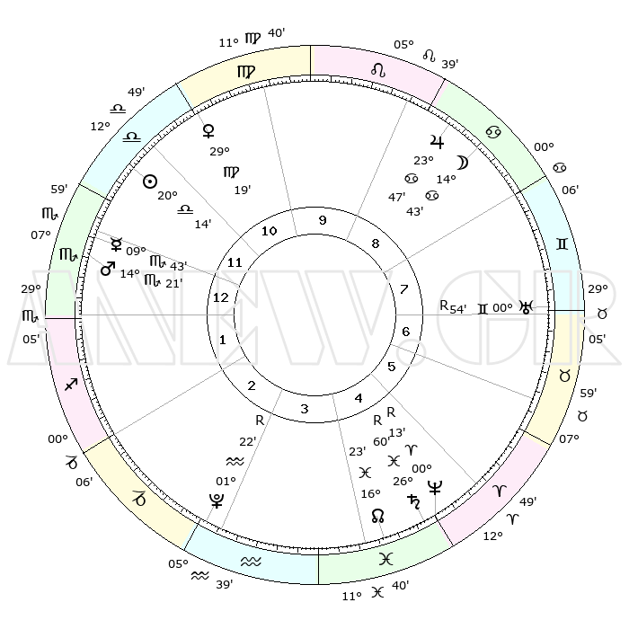 | ΘΕΣΕΙΣ ΠΛΑΝΗΤΩΝ ΑΣΤΡΟΛΟΓΙΚΟΥ ΧΑΡΤΗ ΤΗΣ ΣΤΙΓΜΗΣ ΑΥΤΗΣ | | Πλανήτης | Ζώδιο | Μοίρες | Δεκαήμ. | Σε οίκο | Απόκλιση | | Ακμές των οίκων | Ηλιος | Ζυγός | 20°08' | Τρίτο | 12 | 07 S 52 | | 1ος | 28°03' | Ζυγός | Σελήνη | Καρκίνος | 13°15' | Δεύτερο | 9 | 27 N 28 | | 2ος | 26°21' | Σκορπιός | Ερμής | Σκορπιός | 09°34' | Πρώτο | 1 | 16 S 08 | | 3ος | 28°10' | Τοξότης | Αφροδίτη | Παρθένος | 29°11' | Τρίτο | 11 | 01 N 42 | | 4ος | 02°13' | Υδροχόος | Αρης | Σκορπιός | 14°16' | Δεύτερο | 1 | 16 S 19 | | 5ος | 05°09' | Ιχθείς | Δίας | Καρκίνος | 23°46' | Τρίτο | 9 | 21 N 23 | | 6ος | 03°60' | Κριός | Κρόνος | Ιχθείς | 27°00'R | Τρίτο | 5 | 03 S 29 | | 7ος | 28°03' | Κριός | Ουρανός | Δίδυμοι | 00°54'R | Πρώτο | 8 | 20 N 08 | | 8ος | 26°21' | Ταύρος | Ποσειδώνας | Κριός | 00°13'R | Πρώτο | 5 | 01 S 10 | | 9ος | 28°10' | Δίδυμοι | Πλούτωνας | Υδροχόος | 01°22'R | Πρώτο | 3 | 23 S 32 | | 10ος | 02°13' | Λέων | Β. Δεσμός | Ιχθείς | 16°24' | Δεύτερο | 5 | 05 S 22 | | 11ος | 05°09' | Παρθένος | Ωροσκόπος | Ζυγός | 28°03' | Τρίτο | | | 12ος | 03°60' | Ζυγός | Μεσουράνημα | Λέων | 02°13' | Πρώτο | | | |