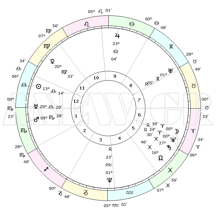 | ΘΕΣΕΙΣ ΠΛΑΝΗΤΩΝ ΑΣΤΡΟΛΟΓΙΚΟΥ ΧΑΡΤΗ ΤΗΣ ΣΤΙΓΜΗΣ ΑΥΤΗΣ | | Πλανήτης | Ζώδιο | Μοίρες | Δεκαήμ. | Σε οίκο | Απόκλιση | | Ακμές των οίκων | Ηλιος | Ζυγός | 13°09' | Δεύτερο | 1 | 05 S 12 | | 1ος | 05°20' | Ζυγός | Σελήνη | Ιχθείς | 29°24' | Τρίτο | 6 | 00 N 42 | | 2ος | 02°18' | Σκορπιός | Ερμής | Ζυγός | 29°12' | Τρίτο | 1 | 11 S 52 | | 3ος | 02°56' | Τοξότης | Αφροδίτη | Παρθένος | 20°27' | Τρίτο | 12 | 05 N 04 | | 4ος | 05°60' | Αιγόκερως | Αρης | Σκορπιός | 09°24' | Πρώτο | 2 | 14 S 45 | | 5ος | 08°56' | Υδροχόος | Δίας | Καρκίνος | 23°04' | Τρίτο | 10 | 21 N 30 | | 6ος | 09°09' | Ιχθείς | Κρόνος | Ιχθείς | 27°30'R | Τρίτο | 6 | 03 S 18 | | 7ος | 05°20' | Κριός | Ουρανός | Δίδυμοι | 01°06'R | Πρώτο | 8 | 20 N 10 | | 8ος | 02°18' | Ταύρος | Ποσειδώνας | Κριός | 00°24'R | Πρώτο | 6 | 01 S 06 | | 9ος | 02°56' | Δίδυμοι | Πλούτωνας | Υδροχόος | 01°23'R | Πρώτο | 4 | 23 S 32 | | 10ος | 05°60' | Καρκίνος | Β. Δεσμός | Ιχθείς | 16°46' | Δεύτερο | 6 | 05 S 13 | | 11ος | 08°56' | Λέων | Ωροσκόπος | Ζυγός | 05°20' | Πρώτο | | | 12ος | 09°09' | Παρθένος | Μεσουράνημα | Καρκίνος | 05°60' | Πρώτο | | | |