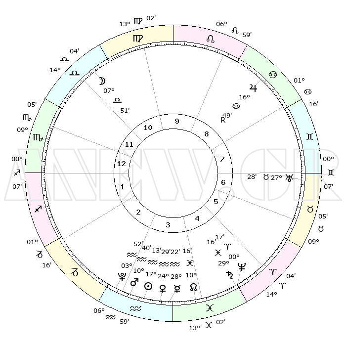 | | ΘΕΣΕΙΣ ΠΛΑΝΗΤΩΝ ΑΣΤΡΟΛΟΓΙΚΟΥ ΧΑΡΤΗ ΤΗΣ ΣΤΙΓΜΗΣ ΑΥΤΗΣ | | | | Πλανήτης | Ζώδιο | Μοίρες | Δεκαήμ. | Σε οίκο | Απόκλιση | | Ακμές των οίκων | | Ηλιος | Υδροχόος | 17°09' | Δεύτερο | 3 | 15 S 42 | | 1ος | 11°11' | Σκορπιός | | Σελήνη | Ζυγός | 07°02' | Πρώτο | 11 | 05 S 03 | | 2ος | 10°21' | Τοξότης | | Ερμής | Υδροχόος | 28°15' | Τρίτο | 4 | 13 S 27 | | 3ος | 13°22' | Αιγόκερως | | Αφροδίτη | Υδροχόος | 24°24' | Τρίτο | 4 | 14 S 44 | | 4ος | 18°22' | Υδροχόος | | Αρης | Υδροχόος | 10°37' | Δεύτερο | 3 | 18 S 35 | | 5ος | 20°59' | Ιχθείς | | Δίας | Καρκίνος | 16°50'R | Δεύτερο | 9 | 22 N 41 | | 6ος | 18°30' | Κριός | | Κρόνος | Ιχθείς | 29°15' | Τρίτο | 5 | 02 S 17 | | 7ος | 11°11' | Ταύρος | | Ουρανός | Ταύρος | 27°28' | Τρίτο | 7 | 19 N 24 | | 8ος | 10°21' | Δίδυμοι | | Ποσειδώνας | Κριός | 00°17' | Πρώτο | 5 | 01 S 06 | | 9ος | 13°22' | Καρκίνος | | Πλούτωνας | Υδροχόος | 03°51' | Πρώτο | 3 | 23 S 00 | | 10ος | 18°22' | Λέων | | Β. Δεσμός | Ιχθείς | 10°16' | Δεύτερο | 4 | 07 S 43 | | 11ος | 20°59' | Παρθένος | | Ωροσκόπος | Σκορπιός | 11°11' | Δεύτερο | | | 12ος | 18°30' | Ζυγός | | Μεσουράνημα | Λέων | 18°22' | Δεύτερο | | | |