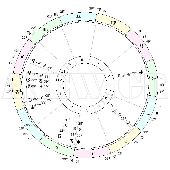 | | ΘΕΣΕΙΣ ΠΛΑΝΗΤΩΝ ΑΣΤΡΟΛΟΓΙΚΟΥ ΧΑΡΤΗ ΤΗΣ ΣΤΙΓΜΗΣ ΑΥΤΗΣ | | | | Πλανήτης | Ζώδιο | Μοίρες | Δεκαήμ. | Σε οίκο | Απόκλιση | | Ακμές των οίκων | | Ηλιος | Αιγόκερως | 00°34' | Πρώτο | 1 | 23 S 26 | | 1ος | 14°12' | Τοξότης | | Σελήνη | Αιγόκερως | 24°08' | Τρίτο | 2 | 24 S 55 | | 2ος | 17°44' | Αιγόκερως | | Ερμής | Τοξότης | 14°00' | Δεύτερο | 12 | 21 S 52 | | 3ος | 25°48' | Υδροχόος | | Αφροδίτη | Τοξότης | 26°52' | Τρίτο | 1 | 23 S 31 | | 4ος | 01°35' | Κριός | | Αρης | Αιγόκερως | 05°13' | Πρώτο | 1 | 24 S 09 | | 5ος | 00°31' | Ταύρος | | Δίας | Καρκίνος | 22°35'R | Τρίτο | 8 | 21 N 45 | | 6ος | 23°45' | Ταύρος | | Κρόνος | Ιχθείς | 25°48' | Τρίτο | 3 | 03 S 47 | | 7ος | 14°12' | Δίδυμοι | | Ουρανός | Ταύρος | 28°15'R | Τρίτο | 6 | 19 N 34 | | 8ος | 17°44' | Καρκίνος | | Ποσειδώνας | Ιχθείς | 29°25' | Τρίτο | 3 | 01 S 28 | | 9ος | 25°48' | Λέων | | Πλούτωνας | Υδροχόος | 02°26' | Πρώτο | 2 | 23 S 17 | | 10ος | 01°35' | Ζυγός | | Β. Δεσμός | Ιχθείς | 12°41' | Δεύτερο | 3 | 06 S 48 | | 11ος | 00°31' | Σκορπιός | | Ωροσκόπος | Τοξότης | 14°12' | Δεύτερο | | | 12ος | 23°45' | Σκορπιός | | Μεσουράνημα | Ζυγός | 01°35' | Πρώτο | | | |