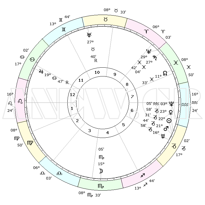 | | ΘΕΣΕΙΣ ΠΛΑΝΗΤΩΝ ΑΣΤΡΟΛΟΓΙΚΟΥ ΧΑΡΤΗ ΤΗΣ ΣΤΙΓΜΗΣ ΑΥΤΗΣ | | | | Πλανήτης | Ζώδιο | Μοίρες | Δεκαήμ. | Σε οίκο | Απόκλιση | | Ακμές των οίκων | | Ηλιος | Αιγόκερως | 22°26' | Τρίτο | 7 | 21 S 34 | | 1ος | 19°36' | Καρκίνος | | Σελήνη | Σκορπιός | 14°00' | Δεύτερο | 5 | 20 S 25 | | 2ος | 10°07' | Λέων | | Ερμής | Αιγόκερως | 16°50' | Δεύτερο | 6 | 24 S 00 | | 3ος | 03°49' | Παρθένος | | Αφροδίτη | Αιγόκερως | 23°51' | Τρίτο | 7 | 22 S 13 | | 4ος | 03°22' | Ζυγός | | Αρης | Αιγόκερως | 21°39' | Τρίτο | 7 | 22 S 38 | | 5ος | 09°20' | Σκορπιός | | Δίας | Καρκίνος | 19°48'R | Δεύτερο | 1 | 22 N 14 | | 6ος | 16°48' | Τοξότης | | Κρόνος | Ιχθείς | 27°04' | Τρίτο | 9 | 03 S 12 | | 7ος | 19°36' | Αιγόκερως | | Ουρανός | Ταύρος | 27°40'R | Τρίτο | 11 | 19 N 27 | | 8ος | 10°07' | Υδροχόος | | Ποσειδώνας | Ιχθείς | 29°41' | Τρίτο | 9 | 01 S 20 | | 9ος | 03°49' | Ιχθείς | | Πλούτωνας | Υδροχόος | 03°05' | Πρώτο | 7 | 23 S 09 | | 10ος | 03°22' | Κριός | | Β. Δεσμός | Ιχθείς | 11°33' | Δεύτερο | 9 | 07 S 14 | | 11ος | 09°20' | Ταύρος | | Ωροσκόπος | Καρκίνος | 19°36' | Δεύτερο | | | 12ος | 16°48' | Δίδυμοι | | Μεσουράνημα | Κριός | 03°22' | Πρώτο | | | |