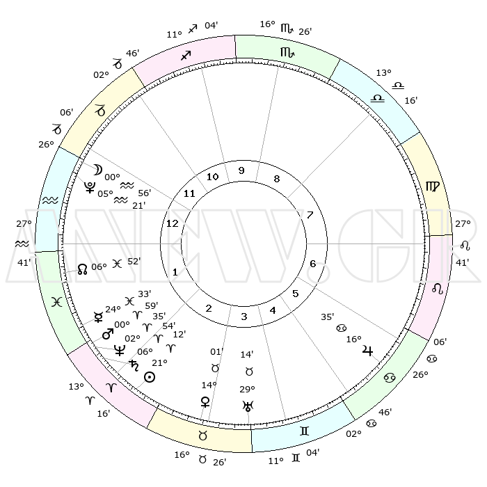 | | ΘΕΣΕΙΣ ΠΛΑΝΗΤΩΝ ΑΣΤΡΟΛΟΓΙΚΟΥ ΧΑΡΤΗ ΤΗΣ ΣΤΙΓΜΗΣ ΑΥΤΗΣ | | | | Πλανήτης | Ζώδιο | Μοίρες | Δεκαήμ. | Σε οίκο | Απόκλιση | | Ακμές των οίκων | | Ηλιος | Κριός | 21°07' | Τρίτο | 3 | 08 N 14 | | 1ος | 19°42' | Αιγόκερως | | Σελήνη | Αιγόκερως | 29°55' | Τρίτο | 1 | 23 S 17 | | 2ος | 01°46' | Ιχθείς | | Ερμής | Ιχθείς | 24°27' | Τρίτο | 2 | 04 S 25 | | 3ος | 11°32' | Κριός | | Αφροδίτη | Ταύρος | 13°55' | Δεύτερο | 4 | 16 N 00 | | 4ος | 11°52' | Ταύρος | | Αρης | Κριός | 00°55' | Πρώτο | 2 | 00 S 33 | | 5ος | 05°33' | Δίδυμοι | | Δίας | Καρκίνος | 16°34' | Δεύτερο | 6 | 22 N 47 | | 6ος | 26°45' | Δίδυμοι | | Κρόνος | Κριός | 06°54' | Πρώτο | 2 | 00 N 46 | | 7ος | 19°42' | Καρκίνος | | Ουρανός | Ταύρος | 29°14' | Τρίτο | 4 | 19 N 49 | | 8ος | 01°46' | Παρθένος | | Ποσειδώνας | Κριός | 02°35' | Πρώτο | 2 | 00 S 11 | | 9ος | 11°32' | Ζυγός | | Πλούτωνας | Υδροχόος | 05°21' | Πρώτο | 1 | 22 S 47 | | 10ος | 11°52' | Σκορπιός | | Β. Δεσμός | Ιχθείς | 06°52' | Πρώτο | 2 | 08 S 59 | | 11ος | 05°33' | Τοξότης | | Ωροσκόπος | Αιγόκερως | 19°42' | Δεύτερο | | | 12ος | 26°45' | Τοξότης | | Μεσουράνημα | Σκορπιός | 11°52' | Δεύτερο | | | |