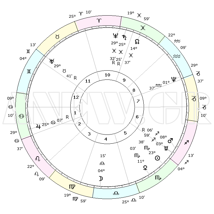 | | ΘΕΣΕΙΣ ΠΛΑΝΗΤΩΝ ΑΣΤΡΟΛΟΓΙΚΟΥ ΧΑΡΤΗ ΤΗΣ ΣΤΙΓΜΗΣ ΑΥΤΗΣ | | | | Πλανήτης | Ζώδιο | Μοίρες | Δεκαήμ. | Σε οίκο | Απόκλιση | | Ακμές των οίκων | | Ηλιος | Σκορπιός | 23°34' | Τρίτο | 6 | 18 S 40 | | 1ος | 15°42' | Δίδυμοι | | Σελήνη | Ζυγός | 03°24' | Πρώτο | 5 | 02 S 44 | | 2ος | 07°52' | Καρκίνος | | Ερμής | Τοξότης | 04°03'R | Πρώτο | 6 | 21 S 57 | | 3ος | 29°06' | Καρκίνος | | Αφροδίτη | Σκορπιός | 10°58' | Δεύτερο | 6 | 13 S 59 | | 4ος | 23°24' | Λέων | | Αρης | Τοξότης | 08°03' | Πρώτο | 6 | 22 S 10 | | 5ος | 24°45' | Παρθένος | | Δίας | Καρκίνος | 25°08'R | Τρίτο | 2 | 21 N 13 | | 6ος | 04°55' | Σκορπιός | | Κρόνος | Ιχθείς | 25°25'R | Τρίτο | 11 | 04 S 03 | | 7ος | 15°42' | Τοξότης | | Ουρανός | Ταύρος | 29°41'R | Τρίτο | 12 | 19 N 52 | | 8ος | 07°52' | Αιγόκερως | | Ποσειδώνας | Ιχθείς | 29°33'R | Τρίτο | 11 | 01 S 26 | | 9ος | 29°06' | Αιγόκερως | | Πλούτωνας | Υδροχόος | 01°37' | Πρώτο | 9 | 23 S 28 | | 10ος | 23°24' | Υδροχόος | | Β. Δεσμός | Ιχθείς | 14°37' | Δεύτερο | 10 | 06 S 03 | | 11ος | 24°45' | Ιχθείς | | Ωροσκόπος | Δίδυμοι | 15°42' | Δεύτερο | | | 12ος | 04°55' | Ταύρος | | Μεσουράνημα | Υδροχόος | 23°24' | Τρίτο | | | |