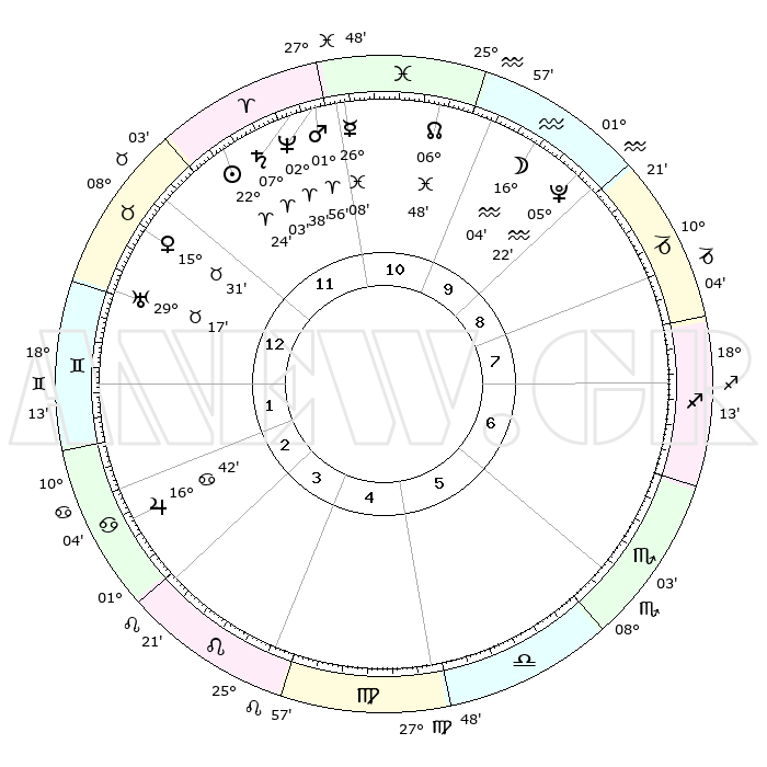 | | ΘΕΣΕΙΣ ΠΛΑΝΗΤΩΝ ΑΣΤΡΟΛΟΓΙΚΟΥ ΧΑΡΤΗ ΤΗΣ ΣΤΙΓΜΗΣ ΑΥΤΗΣ | | | | Πλανήτης | Ζώδιο | Μοίρες | Δεκαήμ. | Σε οίκο | Απόκλιση | | Ακμές των οίκων | | Ηλιος | Κριός | 22°20' | Τρίτο | 12 | 08 N 42 | | 1ος | 24°51' | Ταύρος | | Σελήνη | Υδροχόος | 15°19' | Δεύτερο | 10 | 18 S 09 | | 2ος | 20°45' | Δίδυμοι | | Ερμής | Ιχθείς | 26°03' | Τρίτο | 11 | 03 S 51 | | 3ος | 12°23' | Καρκίνος | | Αφροδίτη | Ταύρος | 15°26' | Δεύτερο | 12 | 16 N 30 | | 4ος | 04°48' | Λέων | | Αρης | Κριός | 01°53' | Πρώτο | 11 | 00 S 10 | | 5ος | 02°25' | Παρθένος | | Δίας | Καρκίνος | 16°41' | Δεύτερο | 3 | 22 N 46 | | 6ος | 09°60' | Ζυγός | | Κρόνος | Κριός | 07°03' | Πρώτο | 11 | 00 N 50 | | 7ος | 24°51' | Σκορπιός | | Ουρανός | Ταύρος | 29°17' | Τρίτο | 1 | 19 N 50 | | 8ος | 20°45' | Τοξότης | | Ποσειδώνας | Κριός | 02°37' | Πρώτο | 11 | 00 S 10 | | 9ος | 12°23' | Αιγόκερως | | Πλούτωνας | Υδροχόος | 05°22' | Πρώτο | 10 | 22 S 47 | | 10ος | 04°48' | Υδροχόος | | Β. Δεσμός | Ιχθείς | 06°49' | Πρώτο | 11 | 09 S 01 | | 11ος | 02°25' | Ιχθείς | | Ωροσκόπος | Ταύρος | 24°51' | Τρίτο | | | 12ος | 09°60' | Κριός | | Μεσουράνημα | Υδροχόος | 04°48' | Πρώτο | | | |