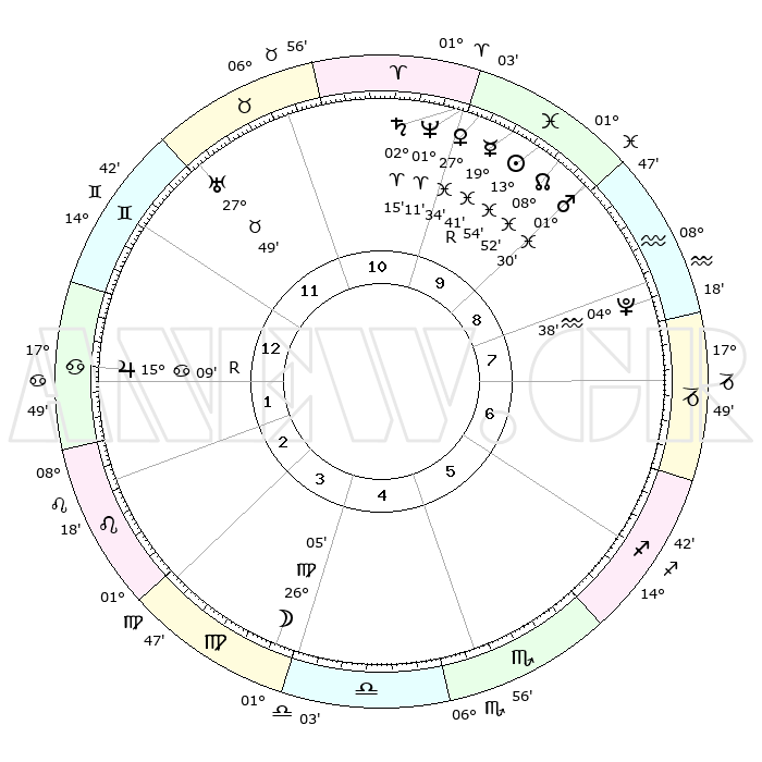 | | ΘΕΣΕΙΣ ΠΛΑΝΗΤΩΝ ΑΣΤΡΟΛΟΓΙΚΟΥ ΧΑΡΤΗ ΤΗΣ ΣΤΙΓΜΗΣ ΑΥΤΗΣ | | | | Πλανήτης | Ζώδιο | Μοίρες | Δεκαήμ. | Σε οίκο | Απόκλιση | | Ακμές των οίκων | | Ηλιος | Ιχθείς | 13°51' | Δεύτερο | 10 | 06 S 21 | | 1ος | 28°03' | Δίδυμοι | | Σελήνη | Παρθένος | 25°16' | Τρίτο | 4 | 00 N 31 | | 2ος | 18°58' | Καρκίνος | | Ερμής | Ιχθείς | 19°44'R | Δεύτερο | 10 | 00 S 42 | | 3ος | 10°39' | Λέων | | Αφροδίτη | Ιχθείς | 27°29' | Τρίτο | 10 | 02 S 12 | | 4ος | 06°39' | Παρθένος | | Αρης | Ιχθείς | 01°27' | Πρώτο | 9 | 11 S 59 | | 5ος | 10°17' | Ζυγός | | Δίας | Καρκίνος | 15°10'R | Δεύτερο | 1 | 22 N 55 | | 6ος | 20°24' | Σκορπιός | | Κρόνος | Κριός | 02°15' | Πρώτο | 10 | 01 S 04 | | 7ος | 28°03' | Τοξότης | | Ουρανός | Ταύρος | 27°49' | Τρίτο | 12 | 19 N 30 | | 8ος | 18°58' | Αιγόκερως | | Ποσειδώνας | Κριός | 01°10' | Πρώτο | 10 | 00 S 44 | | 9ος | 10°39' | Υδροχόος | | Πλούτωνας | Υδροχόος | 04°38' | Πρώτο | 8 | 22 S 52 | | 10ος | 06°39' | Ιχθείς | | Β. Δεσμός | Ιχθείς | 08°52' | Πρώτο | 10 | 08 S 15 | | 11ος | 10°17' | Κριός | | Ωροσκόπος | Δίδυμοι | 28°03' | Τρίτο | | | 12ος | 20°24' | Ταύρος | | Μεσουράνημα | Ιχθείς | 06°39' | Πρώτο | | | |