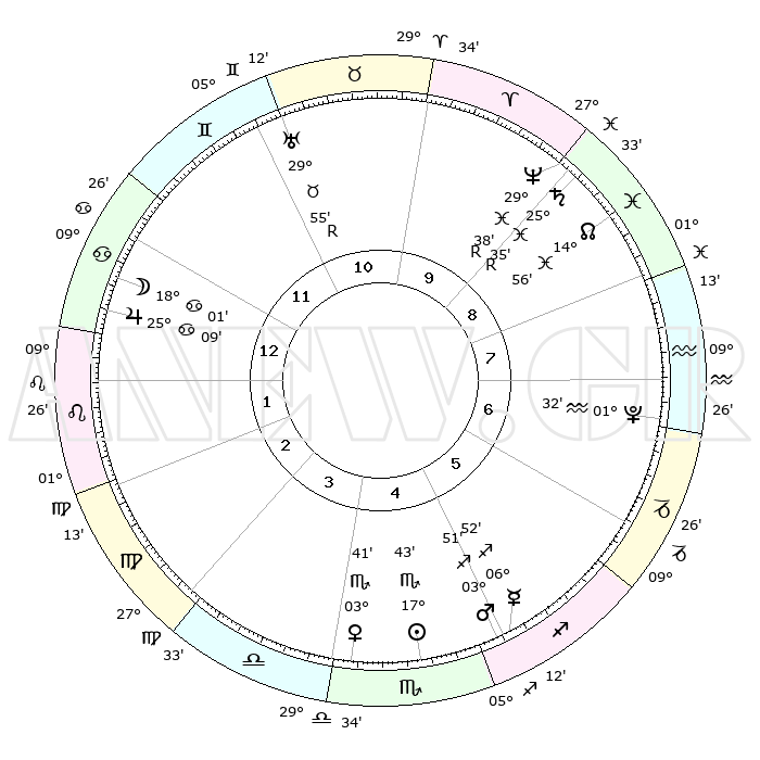 | | ΘΕΣΕΙΣ ΠΛΑΝΗΤΩΝ ΑΣΤΡΟΛΟΓΙΚΟΥ ΧΑΡΤΗ ΤΗΣ ΣΤΙΓΜΗΣ ΑΥΤΗΣ | | | | Πλανήτης | Ζώδιο | Μοίρες | Δεκαήμ. | Σε οίκο | Απόκλιση | | Ακμές των οίκων | | Ηλιος | Σκορπιός | 17°36' | Δεύτερο | 5 | 17 S 05 | | 1ος | 06°37' | Καρκίνος | | Σελήνη | Καρκίνος | 16°27' | Δεύτερο | 1 | 26 N 47 | | 2ος | 27°07' | Καρκίνος | | Ερμής | Τοξότης | 06°52' | Πρώτο | 6 | 23 S 46 | | 3ος | 19°26' | Λέων | | Αφροδίτη | Σκορπιός | 03°33' | Πρώτο | 5 | 11 S 27 | | 4ος | 16°50' | Παρθένος | | Αρης | Τοξότης | 03°46' | Πρώτο | 6 | 21 S 22 | | 5ος | 21°43' | Ζυγός | | Δίας | Καρκίνος | 25°09' | Τρίτο | 1 | 21 N 12 | | 6ος | 01°05' | Τοξότης | | Κρόνος | Ιχθείς | 25°35'R | Τρίτο | 10 | 04 S 00 | | 7ος | 06°37' | Αιγόκερως | | Ουρανός | Ταύρος | 29°56'R | Τρίτο | 11 | 19 N 56 | | 8ος | 27°07' | Αιγόκερως | | Ποσειδώνας | Ιχθείς | 29°38'R | Τρίτο | 10 | 01 S 24 | | 9ος | 19°26' | Υδροχόος | | Πλούτωνας | Υδροχόος | 01°32' | Πρώτο | 8 | 23 S 29 | | 10ος | 16°50' | Ιχθείς | | Β. Δεσμός | Ιχθείς | 14°56' | Δεύτερο | 9 | 05 S 56 | | 11ος | 21°43' | Κριός | | Ωροσκόπος | Καρκίνος | 06°37' | Πρώτο | | | 12ος | 01°05' | Δίδυμοι | | Μεσουράνημα | Ιχθείς | 16°50' | Δεύτερο | | | |