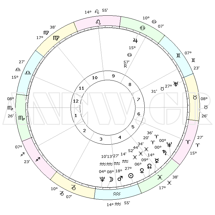 | | ΘΕΣΕΙΣ ΠΛΑΝΗΤΩΝ ΑΣΤΡΟΛΟΓΙΚΟΥ ΧΑΡΤΗ ΤΗΣ ΣΤΙΓΜΗΣ ΑΥΤΗΣ | | | | Πλανήτης | Ζώδιο | Μοίρες | Δεκαήμ. | Σε οίκο | Απόκλιση | | Ακμές των οίκων | | Ηλιος | Υδροχόος | 27°10' | Τρίτο | 4 | 12 S 27 | | 1ος | 22°52' | Ζυγός | | Σελήνη | Υδροχόος | 07°32' | Πρώτο | 4 | 21 S 03 | | 2ος | 20°52' | Σκορπιός | | Ερμής | Ιχθείς | 14°30' | Δεύτερο | 5 | 05 S 53 | | 3ος | 22°20' | Τοξότης | | Αφροδίτη | Ιχθείς | 06°48' | Πρώτο | 5 | 10 S 22 | | 4ος | 26°04' | Αιγόκερως | | Αρης | Υδροχόος | 18°24' | Δεύτερο | 4 | 16 S 20 | | 5ος | 29°02' | Υδροχόος | | Δίας | Καρκίνος | 15°58'R | Δεύτερο | 9 | 22 N 48 | | 6ος | 28°17' | Ιχθείς | | Κρόνος | Κριός | 00°19' | Πρώτο | 6 | 01 S 51 | | 7ος | 22°52' | Κριός | | Ουρανός | Ταύρος | 27°31' | Τρίτο | 8 | 19 N 25 | | 8ος | 20°52' | Ταύρος | | Ποσειδώνας | Κριός | 00°36' | Πρώτο | 6 | 00 S 58 | | 9ος | 22°20' | Δίδυμοι | | Πλούτωνας | Υδροχόος | 04°10' | Πρώτο | 4 | 22 S 56 | | 10ος | 26°04' | Καρκίνος | | Β. Δεσμός | Ιχθείς | 09°44' | Πρώτο | 5 | 07 S 55 | | 11ος | 29°02' | Λέων | | Ωροσκόπος | Ζυγός | 22°52' | Τρίτο | | | 12ος | 28°17' | Παρθένος | | Μεσουράνημα | Καρκίνος | 26°04' | Τρίτο | | | |