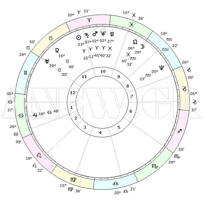 | | ΘΕΣΕΙΣ ΠΛΑΝΗΤΩΝ ΑΣΤΡΟΛΟΓΙΚΟΥ ΧΑΡΤΗ ΤΗΣ ΣΤΙΓΜΗΣ ΑΥΤΗΣ | | | | Πλανήτης | Ζώδιο | Μοίρες | Δεκαήμ. | Σε οίκο | Απόκλιση | | Ακμές των οίκων | | Ηλιος | Κριός | 23°21' | Τρίτο | 11 | 09 N 04 | | 1ος | 12°16' | Δίδυμοι | | Σελήνη | Υδροχόος | 28°39' | Τρίτο | 10 | 12 S 44 | | 2ος | 04°55' | Καρκίνος | | Ερμής | Ιχθείς | 27°26' | Τρίτο | 11 | 03 S 20 | | 3ος | 26°08' | Καρκίνος | | Αφροδίτη | Ταύρος | 16°43' | Δεύτερο | 12 | 16 N 55 | | 4ος | 20°01' | Λέων | | Αρης | Κριός | 02°42' | Πρώτο | 11 | 00 N 10 | | 5ος | 20°44' | Παρθένος | | Δίας | Καρκίνος | 16°47' | Δεύτερο | 2 | 22 N 45 | | 6ος | 00°39' | Σκορπιός | | Κρόνος | Κριός | 07°11' | Πρώτο | 11 | 00 N 53 | | 7ος | 12°16' | Τοξότης | | Ουρανός | Ταύρος | 29°20' | Τρίτο | 12 | 19 N 50 | | 8ος | 04°55' | Αιγόκερως | | Ποσειδώνας | Κριός | 02°40' | Πρώτο | 11 | 00 S 09 | | 9ος | 26°08' | Αιγόκερως | | Πλούτωνας | Υδροχόος | 05°23' | Πρώτο | 9 | 22 S 47 | | 10ος | 20°01' | Υδροχόος | | Β. Δεσμός | Ιχθείς | 06°45' | Πρώτο | 10 | 09 S 02 | | 11ος | 20°44' | Ιχθείς | | Ωροσκόπος | Δίδυμοι | 12°16' | Δεύτερο | | | 12ος | 00°39' | Ταύρος | | Μεσουράνημα | Υδροχόος | 20°01' | Τρίτο | | | |