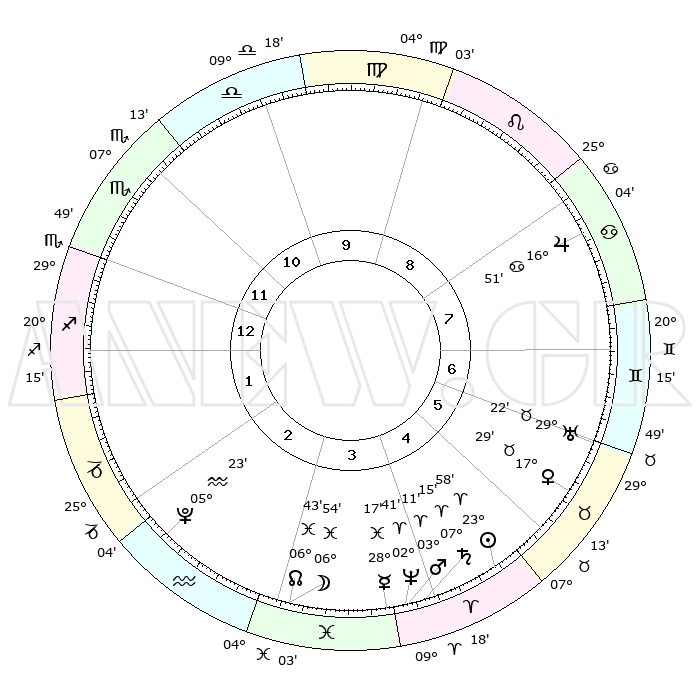 | | ΘΕΣΕΙΣ ΠΛΑΝΗΤΩΝ ΑΣΤΡΟΛΟΓΙΚΟΥ ΧΑΡΤΗ ΤΗΣ ΣΤΙΓΜΗΣ ΑΥΤΗΣ | | | | Πλανήτης | Ζώδιο | Μοίρες | Δεκαήμ. | Σε οίκο | Απόκλιση | | Ακμές των οίκων | | Ηλιος | Κριός | 23°54' | Τρίτο | 5 | 09 N 16 | | 1ος | 26°58' | Σκορπιός | | Σελήνη | Ιχθείς | 05°52' | Πρώτο | 3 | 09 S 33 | | 2ος | 27°42' | Τοξότης | | Ερμής | Ιχθείς | 28°11' | Τρίτο | 4 | 03 S 04 | | 3ος | 02°54' | Υδροχόος | | Αφροδίτη | Ταύρος | 17°23' | Δεύτερο | 6 | 17 N 08 | | 4ος | 08°51' | Ιχθείς | | Αρης | Κριός | 03°07' | Πρώτο | 4 | 00 N 20 | | 5ος | 10°15' | Κριός | | Δίας | Καρκίνος | 16°51' | Δεύτερο | 8 | 22 N 45 | | 6ος | 05°43' | Ταύρος | | Κρόνος | Κριός | 07°14' | Πρώτο | 4 | 00 N 54 | | 7ος | 26°58' | Ταύρος | | Ουρανός | Ταύρος | 29°22' | Τρίτο | 7 | 19 N 51 | | 8ος | 27°42' | Δίδυμοι | | Ποσειδώνας | Κριός | 02°41' | Πρώτο | 4 | 00 S 08 | | 9ος | 02°54' | Λέων | | Πλούτωνας | Υδροχόος | 05°23' | Πρώτο | 3 | 22 S 47 | | 10ος | 08°51' | Παρθένος | | Β. Δεσμός | Ιχθείς | 06°44' | Πρώτο | 3 | 09 S 02 | | 11ος | 10°15' | Ζυγός | | Ωροσκόπος | Σκορπιός | 26°58' | Τρίτο | | | 12ος | 05°43' | Σκορπιός | | Μεσουράνημα | Παρθένος | 08°51' | Πρώτο | | | |