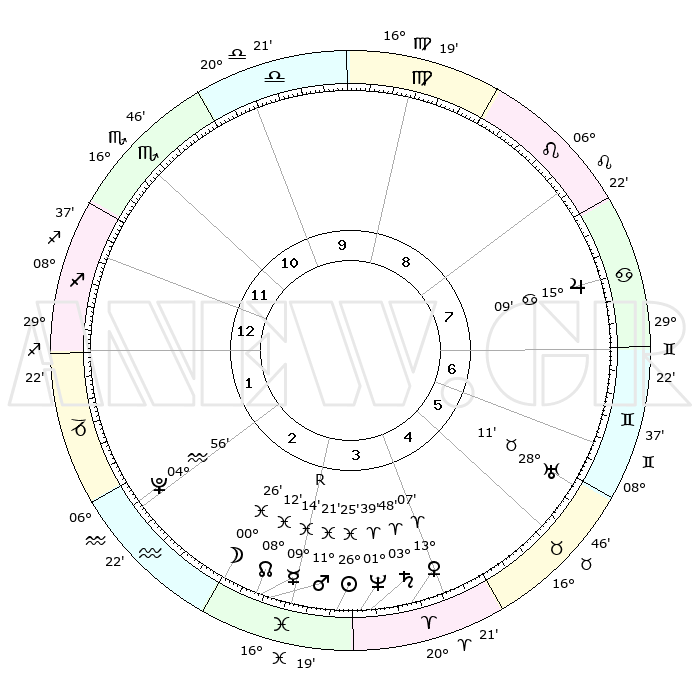 | | ΘΕΣΕΙΣ ΠΛΑΝΗΤΩΝ ΑΣΤΡΟΛΟΓΙΚΟΥ ΧΑΡΤΗ ΤΗΣ ΣΤΙΓΜΗΣ ΑΥΤΗΣ | | | | Πλανήτης | Ζώδιο | Μοίρες | Δεκαήμ. | Σε οίκο | Απόκλιση | | Ακμές των οίκων | | Ηλιος | Ιχθείς | 26°21' | Τρίτο | 3 | 01 S 27 | | 1ος | 10°15' | Τοξότης | | Σελήνη | Υδροχόος | 29°37' | Τρίτο | 3 | 12 S 25 | | 2ος | 13°02' | Αιγόκερως | | Ερμής | Ιχθείς | 09°16'R | Πρώτο | 3 | 06 S 17 | | 3ος | 20°28' | Υδροχόος | | Αφροδίτη | Κριός | 13°03' | Δεύτερο | 4 | 04 N 14 | | 4ος | 26°27' | Ιχθείς | | Αρης | Ιχθείς | 11°19' | Δεύτερο | 3 | 08 S 19 | | 5ος | 26°01' | Κριός | | Δίας | Καρκίνος | 15°08' | Δεύτερο | 8 | 22 N 56 | | 6ος | 19°44' | Ταύρος | | Κρόνος | Κριός | 03°47' | Πρώτο | 4 | 00 S 27 | | 7ος | 10°15' | Δίδυμοι | | Ουρανός | Ταύρος | 28°11' | Τρίτο | 6 | 19 N 35 | | 8ος | 13°02' | Καρκίνος | | Ποσειδώνας | Κριός | 01°38' | Πρώτο | 4 | 00 S 33 | | 9ος | 20°28' | Λέων | | Πλούτωνας | Υδροχόος | 04°56' | Πρώτο | 2 | 22 S 49 | | 10ος | 26°27' | Παρθένος | | Β. Δεσμός | Ιχθείς | 08°12' | Πρώτο | 3 | 08 S 30 | | 11ος | 26°01' | Ζυγός | | Ωροσκόπος | Τοξότης | 10°15' | Δεύτερο | | | 12ος | 19°44' | Σκορπιός | | Μεσουράνημα | Παρθένος | 26°27' | Τρίτο | | | |