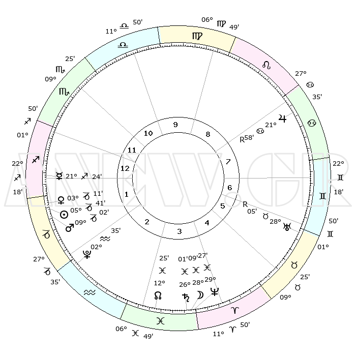 | | ΘΕΣΕΙΣ ΠΛΑΝΗΤΩΝ ΑΣΤΡΟΛΟΓΙΚΟΥ ΧΑΡΤΗ ΤΗΣ ΣΤΙΓΜΗΣ ΑΥΤΗΣ | | | | Πλανήτης | Ζώδιο | Μοίρες | Δεκαήμ. | Σε οίκο | Απόκλιση | | Ακμές των οίκων | | Ηλιος | Αιγόκερως | 05°37' | Πρώτο | 1 | 23 S 19 | | 1ος | 03°57' | Τοξότης | | Σελήνη | Ιχθείς | 27°21' | Τρίτο | 4 | 00 N 14 | | 2ος | 05°40' | Αιγόκερως | | Ερμής | Τοξότης | 21°19' | Τρίτο | 1 | 23 S 09 | | 3ος | 12°02' | Υδροχόος | | Αφροδίτη | Αιγόκερως | 03°06' | Πρώτο | 1 | 23 S 43 | | 4ος | 18°07' | Ιχθείς | | Αρης | Αιγόκερως | 08°59' | Πρώτο | 2 | 23 S 59 | | 5ος | 18°38' | Κριός | | Δίας | Καρκίνος | 21°58'R | Τρίτο | 8 | 21 N 52 | | 6ος | 13°09' | Ταύρος | | Κρόνος | Ιχθείς | 26°01' | Τρίτο | 4 | 03 S 40 | | 7ος | 03°57' | Δίδυμοι | | Ουρανός | Ταύρος | 28°05'R | Τρίτο | 6 | 19 N 32 | | 8ος | 05°40' | Καρκίνος | | Ποσειδώνας | Ιχθείς | 29°27' | Τρίτο | 4 | 01 S 27 | | 9ος | 12°02' | Λέων | | Πλούτωνας | Υδροχόος | 02°35' | Πρώτο | 2 | 23 S 15 | | 10ος | 18°07' | Παρθένος | | Β. Δεσμός | Ιχθείς | 12°26' | Δεύτερο | 3 | 06 S 54 | | 11ος | 18°38' | Ζυγός | | Ωροσκόπος | Τοξότης | 03°57' | Πρώτο | | | 12ος | 13°09' | Σκορπιός | | Μεσουράνημα | Παρθένος | 18°07' | Δεύτερο | | | |