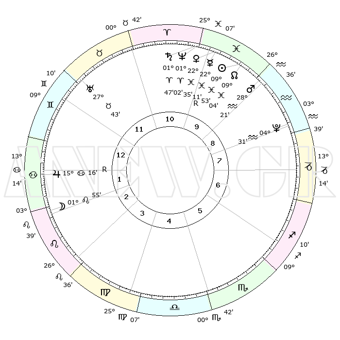 | | ΘΕΣΕΙΣ ΠΛΑΝΗΤΩΝ ΑΣΤΡΟΛΟΓΙΚΟΥ ΧΑΡΤΗ ΤΗΣ ΣΤΙΓΜΗΣ ΑΥΤΗΣ | | | | Πλανήτης | Ζώδιο | Μοίρες | Δεκαήμ. | Σε οίκο | Απόκλιση | | Ακμές των οίκων | | Ηλιος | Ιχθείς | 09°50' | Πρώτο | 10 | 07 S 53 | | 1ος | 25°03' | Δίδυμοι | | Σελήνη | Λέων | 01°08' | Πρώτο | 2 | 23 N 04 | | 2ος | 16°12' | Καρκίνος | | Ερμής | Ιχθείς | 22°12'R | Τρίτο | 10 | 00 S 09 | | 3ος | 07°43' | Λέων | | Αφροδίτη | Ιχθείς | 22°31' | Τρίτο | 10 | 04 S 14 | | 4ος | 03°17' | Παρθένος | | Αρης | Υδροχόος | 28°18' | Τρίτο | 9 | 13 S 05 | | 5ος | 06°23' | Ζυγός | | Δίας | Καρκίνος | 15°16'R | Δεύτερο | 1 | 22 N 54 | | 6ος | 16°38' | Σκορπιός | | Κρόνος | Κριός | 01°46' | Πρώτο | 10 | 01 S 15 | | 7ος | 25°03' | Τοξότης | | Ουρανός | Ταύρος | 27°43' | Τρίτο | 12 | 19 N 28 | | 8ος | 16°12' | Αιγόκερως | | Ποσειδώνας | Κριός | 01°02' | Πρώτο | 10 | 00 S 47 | | 9ος | 07°43' | Υδροχόος | | Πλούτωνας | Υδροχόος | 04°31' | Πρώτο | 8 | 22 S 53 | | 10ος | 03°17' | Ιχθείς | | Β. Δεσμός | Ιχθείς | 09°04' | Πρώτο | 10 | 08 S 10 | | 11ος | 06°23' | Κριός | | Ωροσκόπος | Δίδυμοι | 25°03' | Τρίτο | | | 12ος | 16°38' | Ταύρος | | Μεσουράνημα | Ιχθείς | 03°17' | Πρώτο | | | |