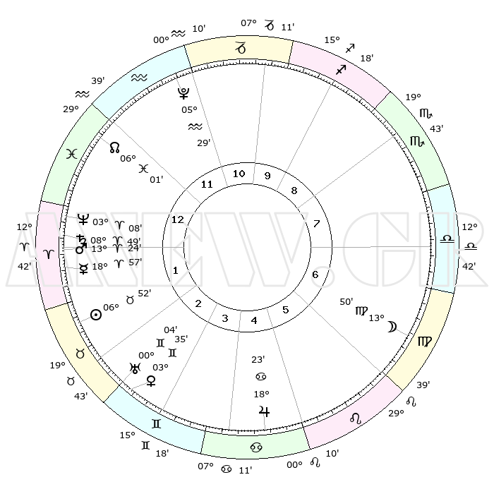 | | ΘΕΣΕΙΣ ΠΛΑΝΗΤΩΝ ΑΣΤΡΟΛΟΓΙΚΟΥ ΧΑΡΤΗ ΤΗΣ ΣΤΙΓΜΗΣ ΑΥΤΗΣ | | | | Πλανήτης | Ζώδιο | Μοίρες | Δεκαήμ. | Σε οίκο | Απόκλιση | | Ακμές των οίκων | | Ηλιος | Ταύρος | 06°48' | Πρώτο | 2 | 13 N 47 | | 1ος | 04°02' | Ιχθείς | | Σελήνη | Παρθένος | 12°58' | Δεύτερο | 7 | 06 N 13 | | 2ος | 19°05' | Κριός | | Ερμής | Κριός | 18°50' | Δεύτερο | 1 | 05 N 15 | | 3ος | 21°00' | Ταύρος | | Αφροδίτη | Δίδυμοι | 03°30' | Πρώτο | 3 | 21 N 33 | | 4ος | 15°02' | Δίδυμοι | | Αρης | Κριός | 13°21' | Δεύτερο | 1 | 04 N 26 | | 5ος | 06°43' | Καρκίνος | | Δίας | Καρκίνος | 18°23' | Δεύτερο | 5 | 22 N 33 | | 6ος | 00°42' | Λέων | | Κρόνος | Κριός | 08°49' | Πρώτο | 1 | 01 N 30 | | 7ος | 04°02' | Παρθένος | | Ουρανός | Δίδυμοι | 00°04' | Πρώτο | 3 | 20 N 00 | | 8ος | 19°05' | Ζυγός | | Ποσειδώνας | Κριός | 03°08' | Πρώτο | 1 | 00 N 02 | | 9ος | 21°00' | Σκορπιός | | Πλούτωνας | Υδροχόος | 05°29' | Πρώτο | 12 | 22 S 48 | | 10ος | 15°02' | Τοξότης | | Β. Δεσμός | Ιχθείς | 06°01' | Πρώτο | 1 | 09 S 18 | | 11ος | 06°43' | Αιγόκερως | | Ωροσκόπος | Ιχθείς | 04°02' | Πρώτο | | | 12ος | 00°42' | Υδροχόος | | Μεσουράνημα | Τοξότης | 15°02' | Δεύτερο | | | |