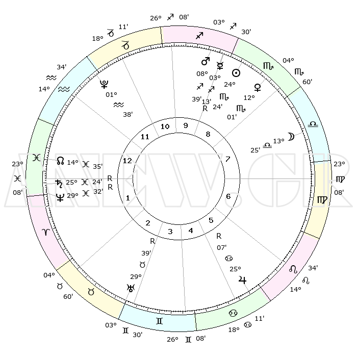 | | ΘΕΣΕΙΣ ΠΛΑΝΗΤΩΝ ΑΣΤΡΟΛΟΓΙΚΟΥ ΧΑΡΤΗ ΤΗΣ ΣΤΙΓΜΗΣ ΑΥΤΗΣ | | | | Πλανήτης | Ζώδιο | Μοίρες | Δεκαήμ. | Σε οίκο | Απόκλιση | | Ακμές των οίκων | | Ηλιος | Σκορπιός | 24°20' | Τρίτο | 9 | 18 S 51 | | 1ος | 12°38' | Υδροχόος | | Σελήνη | Ζυγός | 12°31' | Δεύτερο | 8 | 07 S 01 | | 2ος | 28°12' | Ιχθείς | | Ερμής | Τοξότης | 03°17'R | Πρώτο | 10 | 21 S 35 | | 3ος | 04°23' | Ταύρος | | Αφροδίτη | Σκορπιός | 11°55' | Δεύτερο | 9 | 14 S 18 | | 4ος | 00°52' | Δίδυμοι | | Αρης | Τοξότης | 08°36' | Πρώτο | 10 | 22 S 16 | | 5ος | 22°55' | Δίδυμοι | | Δίας | Καρκίνος | 25°07'R | Τρίτο | 6 | 21 N 14 | | 6ος | 14°59' | Καρκίνος | | Κρόνος | Ιχθείς | 25°24'R | Τρίτο | 1 | 04 S 03 | | 7ος | 12°38' | Λέων | | Ουρανός | Ταύρος | 29°39'R | Τρίτο | 3 | 19 N 52 | | 8ος | 28°12' | Παρθένος | | Ποσειδώνας | Ιχθείς | 29°32'R | Τρίτο | 2 | 01 S 26 | | 9ος | 04°23' | Σκορπιός | | Πλούτωνας | Υδροχόος | 01°38' | Πρώτο | 12 | 23 S 28 | | 10ος | 00°52' | Τοξότης | | Β. Δεσμός | Ιχθείς | 14°35' | Δεύτερο | 1 | 06 S 04 | | 11ος | 22°55' | Τοξότης | | Ωροσκόπος | Υδροχόος | 12°38' | Δεύτερο | | | 12ος | 14°59' | Αιγόκερως | | Μεσουράνημα | Τοξότης | 00°52' | Πρώτο | | | |