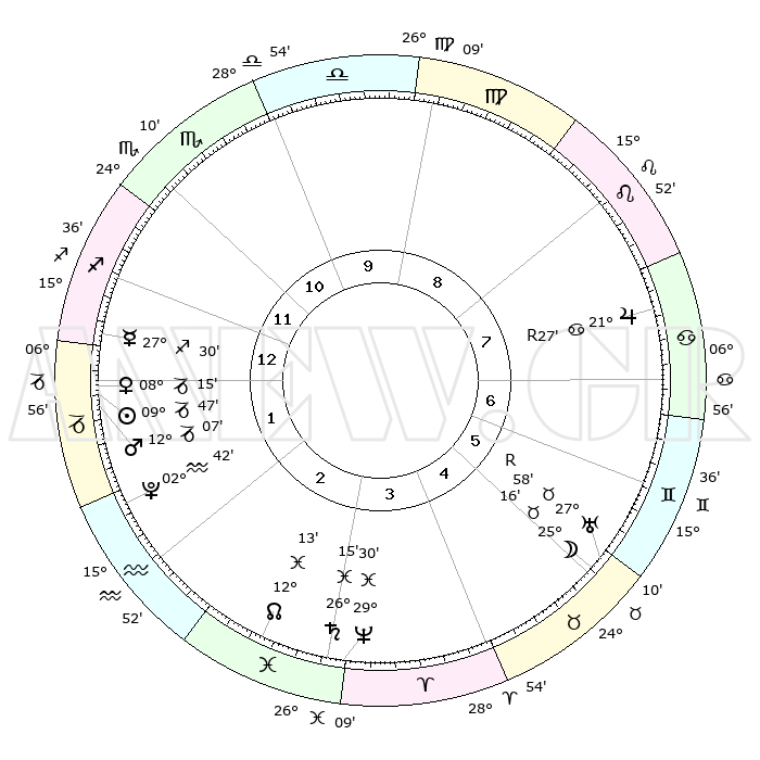 | | ΘΕΣΕΙΣ ΠΛΑΝΗΤΩΝ ΑΣΤΡΟΛΟΓΙΚΟΥ ΧΑΡΤΗ ΤΗΣ ΣΤΙΓΜΗΣ ΑΥΤΗΣ | | | | Πλανήτης | Ζώδιο | Μοίρες | Δεκαήμ. | Σε οίκο | Απόκλιση | | Ακμές των οίκων | | Ηλιος | Αιγόκερως | 09°43' | Πρώτο | 1 | 23 S 05 | | 1ος | 15°08' | Τοξότης | | Σελήνη | Ταύρος | 24°16' | Τρίτο | 5 | 23 N 32 | | 2ος | 18°51' | Αιγόκερως | | Ερμής | Τοξότης | 27°23' | Τρίτο | 1 | 23 S 53 | | 3ος | 27°04' | Υδροχόος | | Αφροδίτη | Αιγόκερως | 08°10' | Πρώτο | 1 | 23 S 39 | | 4ος | 02°47' | Κριός | | Αρης | Αιγόκερως | 12°03' | Δεύτερο | 1 | 23 S 46 | | 5ος | 01°34' | Ταύρος | | Δίας | Καρκίνος | 21°28'R | Τρίτο | 8 | 21 N 57 | | 6ος | 24°42' | Ταύρος | | Κρόνος | Ιχθείς | 26°14' | Τρίτο | 3 | 03 S 34 | | 7ος | 15°08' | Δίδυμοι | | Ουρανός | Ταύρος | 27°58'R | Τρίτο | 6 | 19 N 31 | | 8ος | 18°51' | Καρκίνος | | Ποσειδώνας | Ιχθείς | 29°30' | Τρίτο | 3 | 01 S 25 | | 9ος | 27°04' | Λέων | | Πλούτωνας | Υδροχόος | 02°42' | Πρώτο | 2 | 23 S 13 | | 10ος | 02°47' | Ζυγός | | Β. Δεσμός | Ιχθείς | 12°13' | Δεύτερο | 3 | 06 S 59 | | 11ος | 01°34' | Σκορπιός | | Ωροσκόπος | Τοξότης | 15°08' | Δεύτερο | | | 12ος | 24°42' | Σκορπιός | | Μεσουράνημα | Ζυγός | 02°47' | Πρώτο | | | |