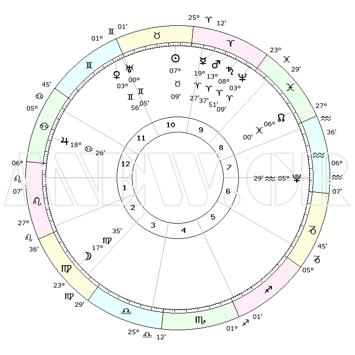 | | ΘΕΣΕΙΣ ΠΛΑΝΗΤΩΝ ΑΣΤΡΟΛΟΓΙΚΟΥ ΧΑΡΤΗ ΤΗΣ ΣΤΙΓΜΗΣ ΑΥΤΗΣ | | | | Πλανήτης | Ζώδιο | Μοίρες | Δεκαήμ. | Σε οίκο | Απόκλιση | | Ακμές των οίκων | | Ηλιος | Ταύρος | 07°06' | Πρώτο | 11 | 13 N 53 | | 1ος | 17°53' | Καρκίνος | | Σελήνη | Παρθένος | 16°48' | Δεύτερο | 3 | 04 N 26 | | 2ος | 08°22' | Λέων | | Ερμής | Κριός | 19°21' | Δεύτερο | 10 | 05 N 28 | | 3ος | 01°51' | Παρθένος | | Αφροδίτη | Δίδυμοι | 03°52' | Πρώτο | 11 | 21 N 38 | | 4ος | 01°08' | Ζυγός | | Αρης | Κριός | 13°34' | Δεύτερο | 10 | 04 N 31 | | 5ος | 07°02' | Σκορπιός | | Δίας | Καρκίνος | 18°25' | Δεύτερο | 1 | 22 N 33 | | 6ος | 14°46' | Τοξότης | | Κρόνος | Κριός | 08°51' | Πρώτο | 10 | 01 N 31 | | 7ος | 17°53' | Αιγόκερως | | Ουρανός | Δίδυμοι | 00°05' | Πρώτο | 11 | 20 N 00 | | 8ος | 08°22' | Υδροχόος | | Ποσειδώνας | Κριός | 03°09' | Πρώτο | 10 | 00 N 02 | | 9ος | 01°51' | Ιχθείς | | Πλούτωνας | Υδροχόος | 05°29' | Πρώτο | 7 | 22 S 48 | | 10ος | 01°08' | Κριός | | Β. Δεσμός | Ιχθείς | 06°01' | Πρώτο | 9 | 09 S 18 | | 11ος | 07°02' | Ταύρος | | Ωροσκόπος | Καρκίνος | 17°53' | Δεύτερο | | | 12ος | 14°46' | Δίδυμοι | | Μεσουράνημα | Κριός | 01°08' | Πρώτο | | | |