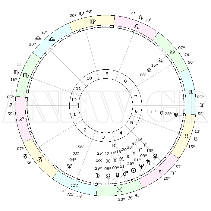 | | ΘΕΣΕΙΣ ΠΛΑΝΗΤΩΝ ΑΣΤΡΟΛΟΓΙΚΟΥ ΧΑΡΤΗ ΤΗΣ ΣΤΙΓΜΗΣ ΑΥΤΗΣ | | | | Πλανήτης | Ζώδιο | Μοίρες | Δεκαήμ. | Σε οίκο | Απόκλιση | | Ακμές των οίκων | | Ηλιος | Ιχθείς | 26°17' | Τρίτο | 4 | 01 S 29 | | 1ος | 21°18' | Σκορπιός | | Σελήνη | Υδροχόος | 28°46' | Τρίτο | 3 | 12 S 47 | | 2ος | 21°23' | Τοξότης | | Ερμής | Ιχθείς | 09°17'R | Πρώτο | 4 | 06 S 16 | | 3ος | 25°43' | Αιγόκερως | | Αφροδίτη | Κριός | 12°58' | Δεύτερο | 5 | 04 N 12 | | 4ος | 01°24' | Ιχθείς | | Αρης | Ιχθείς | 11°15' | Δεύτερο | 4 | 08 S 21 | | 5ος | 03°21' | Κριός | | Δίας | Καρκίνος | 15°08' | Δεύτερο | 8 | 22 N 56 | | 6ος | 29°35' | Κριός | | Κρόνος | Κριός | 03°47' | Πρώτο | 5 | 00 S 27 | | 7ος | 21°18' | Ταύρος | | Ουρανός | Ταύρος | 28°10' | Τρίτο | 7 | 19 N 35 | | 8ος | 21°23' | Δίδυμοι | | Ποσειδώνας | Κριός | 01°38' | Πρώτο | 4 | 00 S 33 | | 9ος | 25°43' | Καρκίνος | | Πλούτωνας | Υδροχόος | 04°56' | Πρώτο | 3 | 22 S 49 | | 10ος | 01°24' | Παρθένος | | Β. Δεσμός | Ιχθείς | 08°12' | Πρώτο | 4 | 08 S 29 | | 11ος | 03°21' | Ζυγός | | Ωροσκόπος | Σκορπιός | 21°18' | Τρίτο | | | 12ος | 29°35' | Ζυγός | | Μεσουράνημα | Παρθένος | 01°24' | Πρώτο | | | |