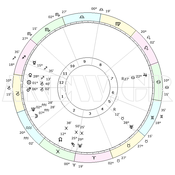 | | ΘΕΣΕΙΣ ΠΛΑΝΗΤΩΝ ΑΣΤΡΟΛΟΓΙΚΟΥ ΧΑΡΤΗ ΤΗΣ ΣΤΙΓΜΗΣ ΑΥΤΗΣ | | | | Πλανήτης | Ζώδιο | Μοίρες | Δεκαήμ. | Σε οίκο | Απόκλιση | | Ακμές των οίκων | | Ηλιος | Αιγόκερως | 01°26' | Πρώτο | 2 | 23 S 26 | | 1ος | 01°32' | Σκορπιός | | Σελήνη | Υδροχόος | 04°40' | Πρώτο | 3 | 22 S 01 | | 2ος | 00°02' | Τοξότης | | Ερμής | Τοξότης | 15°15' | Δεύτερο | 2 | 22 S 07 | | 3ος | 02°06' | Αιγόκερως | | Αφροδίτη | Τοξότης | 27°56' | Τρίτο | 2 | 23 S 35 | | 4ος | 06°24' | Υδροχόος | | Αρης | Αιγόκερως | 05°51' | Πρώτο | 3 | 24 S 08 | | 5ος | 09°18' | Ιχθείς | | Δίας | Καρκίνος | 22°29'R | Τρίτο | 9 | 21 N 46 | | 6ος | 07°50' | Κριός | | Κρόνος | Ιχθείς | 25°50' | Τρίτο | 5 | 03 S 46 | | 7ος | 01°31' | Ταύρος | | Ουρανός | Ταύρος | 28°13'R | Τρίτο | 7 | 19 N 34 | | 8ος | 00°02' | Δίδυμοι | | Ποσειδώνας | Ιχθείς | 29°25' | Τρίτο | 5 | 01 S 28 | | 9ος | 02°06' | Καρκίνος | | Πλούτωνας | Υδροχόος | 02°28' | Πρώτο | 3 | 23 S 16 | | 10ος | 06°24' | Λέων | | Β. Δεσμός | Ιχθείς | 12°39' | Δεύτερο | 5 | 06 S 49 | | 11ος | 09°18' | Παρθένος | | Ωροσκόπος | Σκορπιός | 01°32' | Πρώτο | | | 12ος | 07°50' | Ζυγός | | Μεσουράνημα | Λέων | 06°24' | Πρώτο | | | |