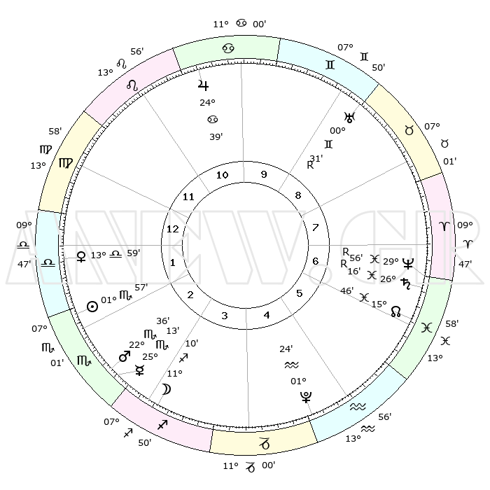 | | ΘΕΣΕΙΣ ΠΛΑΝΗΤΩΝ ΑΣΤΡΟΛΟΓΙΚΟΥ ΧΑΡΤΗ ΤΗΣ ΣΤΙΓΜΗΣ ΑΥΤΗΣ | | | | Πλανήτης | Ζώδιο | Μοίρες | Δεκαήμ. | Σε οίκο | Απόκλιση | | Ακμές των οίκων | | Ηλιος | Σκορπιός | 01°27' | Πρώτο | 7 | 11 S 59 | | 1ος | 15°22' | Κριός | | Σελήνη | Τοξότης | 05°11' | Πρώτο | 8 | 26 S 05 | | 2ος | 21°39' | Ταύρος | | Ερμής | Σκορπιός | 24°37' | Τρίτο | 8 | 21 S 26 | | 3ος | 16°54' | Δίδυμοι | | Αφροδίτη | Ζυγός | 13°22' | Δεύτερο | 6 | 03 S 52 | | 4ος | 08°42' | Καρκίνος | | Αρης | Σκορπιός | 22°15' | Τρίτο | 8 | 18 S 38 | | 5ος | 01°53' | Λέων | | Δίας | Καρκίνος | 24°37' | Τρίτο | 4 | 21 N 16 | | 6ος | 01°50' | Παρθένος | | Κρόνος | Ιχθείς | 26°18'R | Τρίτο | 12 | 03 S 45 | | 7ος | 15°22' | Ζυγός | | Ουρανός | Δίδυμοι | 00°33'R | Πρώτο | 2 | 20 N 03 | | 8ος | 21°39' | Σκορπιός | | Ποσειδώνας | Ιχθείς | 29°57'R | Τρίτο | 12 | 01 S 17 | | 9ος | 16°54' | Τοξότης | | Πλούτωνας | Υδροχόος | 01°24' | Πρώτο | 10 | 23 S 32 | | 10ος | 08°42' | Αιγόκερως | | Β. Δεσμός | Ιχθείς | 15°47' | Δεύτερο | 12 | 05 S 36 | | 11ος | 01°53' | Υδροχόος | | Ωροσκόπος | Κριός | 15°22' | Δεύτερο | | | 12ος | 01°50' | Ιχθείς | | Μεσουράνημα | Αιγόκερως | 08°42' | Πρώτο | | | |