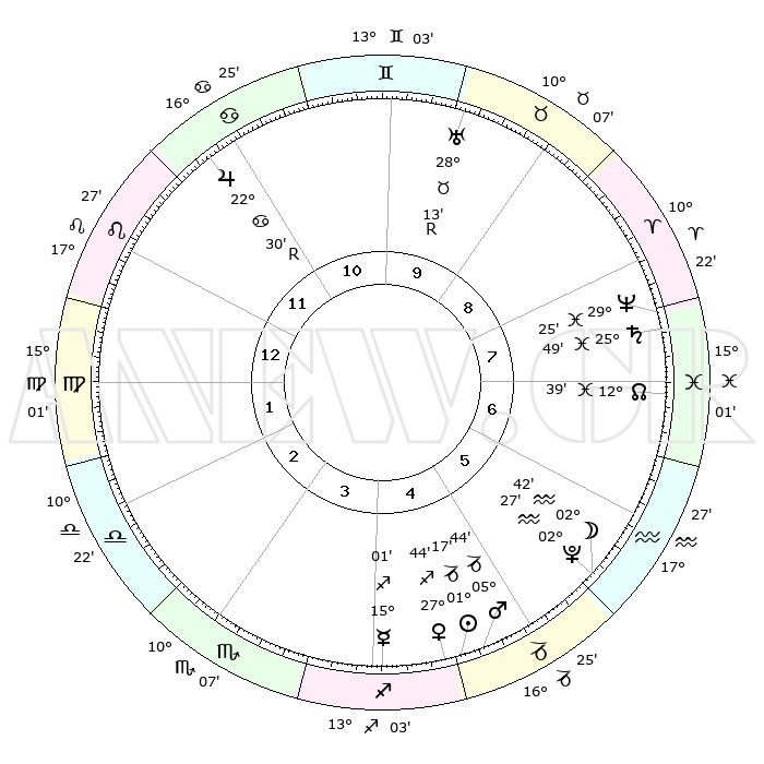 | | ΘΕΣΕΙΣ ΠΛΑΝΗΤΩΝ ΑΣΤΡΟΛΟΓΙΚΟΥ ΧΑΡΤΗ ΤΗΣ ΣΤΙΓΜΗΣ ΑΥΤΗΣ | | | | Πλανήτης | Ζώδιο | Μοίρες | Δεκαήμ. | Σε οίκο | Απόκλιση | | Ακμές των οίκων | | Ηλιος | Αιγόκερως | 01°12' | Πρώτο | 5 | 23 S 26 | | 1ος | 22°55' | Λέων | | Σελήνη | Υδροχόος | 01°45' | Πρώτο | 6 | 22 S 54 | | 2ος | 16°02' | Παρθένος | | Ερμής | Τοξότης | 14°54' | Δεύτερο | 4 | 22 S 03 | | 3ος | 13°60' | Ζυγός | | Αφροδίτη | Τοξότης | 27°39' | Τρίτο | 5 | 23 S 34 | | 4ος | 16°46' | Σκορπιός | | Αρης | Αιγόκερως | 05°41' | Πρώτο | 5 | 24 S 08 | | 5ος | 21°28' | Τοξότης | | Δίας | Καρκίνος | 22°30'R | Τρίτο | 11 | 21 N 46 | | 6ος | 24°03' | Αιγόκερως | | Κρόνος | Ιχθείς | 25°49' | Τρίτο | 8 | 03 S 46 | | 7ος | 22°55' | Υδροχόος | | Ουρανός | Ταύρος | 28°13'R | Τρίτο | 10 | 19 N 34 | | 8ος | 16°02' | Ιχθείς | | Ποσειδώνας | Ιχθείς | 29°25' | Τρίτο | 8 | 01 S 28 | | 9ος | 13°60' | Κριός | | Πλούτωνας | Υδροχόος | 02°27' | Πρώτο | 6 | 23 S 17 | | 10ος | 16°46' | Ταύρος | | Β. Δεσμός | Ιχθείς | 12°39' | Δεύτερο | 7 | 06 S 48 | | 11ος | 21°28' | Δίδυμοι | | Ωροσκόπος | Λέων | 22°55' | Τρίτο | | | 12ος | 24°03' | Καρκίνος | | Μεσουράνημα | Ταύρος | 16°46' | Δεύτερο | | | |