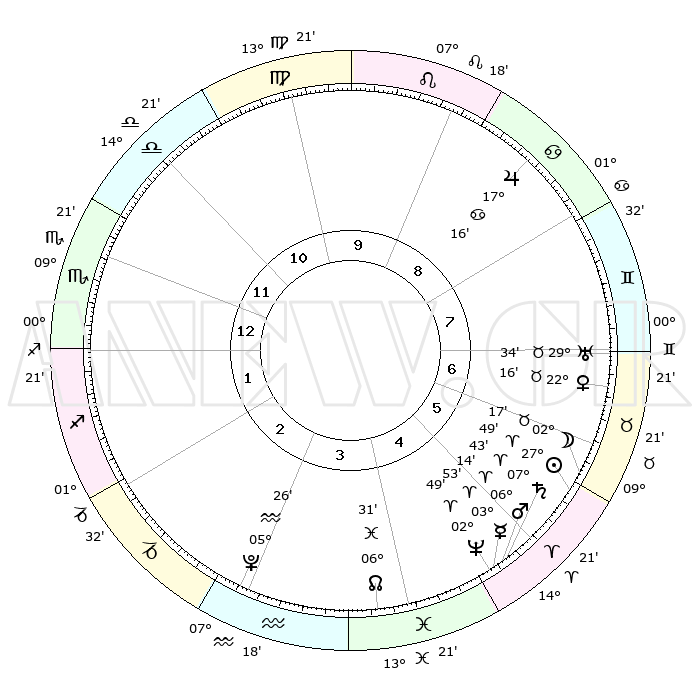 | | ΘΕΣΕΙΣ ΠΛΑΝΗΤΩΝ ΑΣΤΡΟΛΟΓΙΚΟΥ ΧΑΡΤΗ ΤΗΣ ΣΤΙΓΜΗΣ ΑΥΤΗΣ | | | | Πλανήτης | Ζώδιο | Μοίρες | Δεκαήμ. | Σε οίκο | Απόκλιση | | Ακμές των οίκων | | Ηλιος | Κριός | 27°15' | Τρίτο | 11 | 10 N 30 | | 1ος | 11°08' | Δίδυμοι | | Σελήνη | Κριός | 23°60' | Τρίτο | 11 | 12 N 44 | | 2ος | 03°57' | Καρκίνος | | Ερμής | Κριός | 03°03' | Πρώτο | 11 | 01 S 12 | | 3ος | 25°10' | Καρκίνος | | Αφροδίτη | Ταύρος | 21°35' | Τρίτο | 12 | 18 N 25 | | 4ος | 18°56' | Λέων | | Αρης | Κριός | 05°47' | Πρώτο | 11 | 01 N 24 | | 5ος | 19°25' | Παρθένος | | Δίας | Καρκίνος | 17°12' | Δεύτερο | 2 | 22 N 42 | | 6ος | 29°15' | Ζυγός | | Κρόνος | Κριός | 07°39' | Πρώτο | 11 | 01 N 04 | | 7ος | 11°08' | Τοξότης | | Ουρανός | Ταύρος | 29°32' | Τρίτο | 12 | 19 N 53 | | 8ος | 03°57' | Αιγόκερως | | Ποσειδώνας | Κριός | 02°48' | Πρώτο | 11 | 00 S 05 | | 9ος | 25°10' | Αιγόκερως | | Πλούτωνας | Υδροχόος | 05°25' | Πρώτο | 9 | 22 S 47 | | 10ος | 18°56' | Υδροχόος | | Β. Δεσμός | Ιχθείς | 06°33' | Πρώτο | 10 | 09 S 06 | | 11ος | 19°25' | Ιχθείς | | Ωροσκόπος | Δίδυμοι | 11°08' | Δεύτερο | | | 12ος | 29°15' | Κριός | | Μεσουράνημα | Υδροχόος | 18°56' | Δεύτερο | | | |