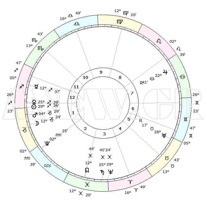 | | ΘΕΣΕΙΣ ΠΛΑΝΗΤΩΝ ΑΣΤΡΟΛΟΓΙΚΟΥ ΧΑΡΤΗ ΤΗΣ ΣΤΙΓΜΗΣ ΑΥΤΗΣ | | | | Πλανήτης | Ζώδιο | Μοίρες | Δεκαήμ. | Σε οίκο | Απόκλιση | | Ακμές των οίκων | | Ηλιος | Τοξότης | 29°32' | Τρίτο | 1 | 23 S 26 | | 1ος | 05°53' | Τοξότης | | Σελήνη | Αιγόκερως | 11°35' | Δεύτερο | 2 | 27 S 16 | | 2ος | 07°54' | Αιγόκερως | | Ερμής | Τοξότης | 12°31' | Δεύτερο | 1 | 21 S 33 | | 3ος | 14°36' | Υδροχόος | | Αφροδίτη | Τοξότης | 25°34' | Τρίτο | 1 | 23 S 27 | | 4ος | 20°41' | Ιχθείς | | Αρης | Αιγόκερως | 04°26' | Πρώτο | 1 | 24 S 11 | | 5ος | 20°55' | Κριός | | Δίας | Καρκίνος | 22°42'R | Τρίτο | 8 | 21 N 44 | | 6ος | 15°11' | Ταύρος | | Κρόνος | Ιχθείς | 25°45' | Τρίτο | 4 | 03 S 48 | | 7ος | 05°53' | Δίδυμοι | | Ουρανός | Ταύρος | 28°17'R | Τρίτο | 6 | 19 N 35 | | 8ος | 07°54' | Καρκίνος | | Ποσειδώνας | Ιχθείς | 29°24' | Τρίτο | 4 | 01 S 28 | | 9ος | 14°36' | Λέων | | Πλούτωνας | Υδροχόος | 02°24' | Πρώτο | 2 | 23 S 17 | | 10ος | 20°41' | Παρθένος | | Β. Δεσμός | Ιχθείς | 12°45' | Δεύτερο | 3 | 06 S 47 | | 11ος | 20°55' | Ζυγός | | Ωροσκόπος | Τοξότης | 05°53' | Πρώτο | | | 12ος | 15°11' | Σκορπιός | | Μεσουράνημα | Παρθένος | 20°41' | Τρίτο | | | |