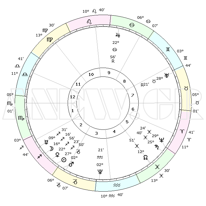 | | ΘΕΣΕΙΣ ΠΛΑΝΗΤΩΝ ΑΣΤΡΟΛΟΓΙΚΟΥ ΧΑΡΤΗ ΤΗΣ ΣΤΙΓΜΗΣ ΑΥΤΗΣ | | | | Πλανήτης | Ζώδιο | Μοίρες | Δεκαήμ. | Σε οίκο | Απόκλιση | | Ακμές των οίκων | | Ηλιος | Τοξότης | 26°59' | Τρίτο | 6 | 23 S 24 | | 1ος | 07°21' | Καρκίνος | | Σελήνη | Τοξότης | 11°29' | Δεύτερο | 6 | 27 S 06 | | 2ος | 27°50' | Καρκίνος | | Ερμής | Τοξότης | 08°58' | Πρώτο | 6 | 20 S 44 | | 3ος | 20°13' | Λέων | | Αφροδίτη | Τοξότης | 22°26' | Τρίτο | 6 | 23 S 12 | | 4ος | 17°44' | Παρθένος | | Αρης | Αιγόκερως | 02°32' | Πρώτο | 6 | 24 S 13 | | 5ος | 22°43' | Ζυγός | | Δίας | Καρκίνος | 22°59'R | Τρίτο | 1 | 21 N 41 | | 6ος | 02°00' | Τοξότης | | Κρόνος | Ιχθείς | 25°39' | Τρίτο | 10 | 03 S 51 | | 7ος | 07°21' | Αιγόκερως | | Ουρανός | Ταύρος | 28°22'R | Τρίτο | 11 | 19 N 36 | | 8ος | 27°50' | Αιγόκερως | | Ποσειδώνας | Ιχθείς | 29°24' | Τρίτο | 10 | 01 S 28 | | 9ος | 20°13' | Υδροχόος | | Πλούτωνας | Υδροχόος | 02°20' | Πρώτο | 8 | 23 S 18 | | 10ος | 17°44' | Ιχθείς | | Β. Δεσμός | Ιχθείς | 12°53' | Δεύτερο | 9 | 06 S 43 | | 11ος | 22°43' | Κριός | | Ωροσκόπος | Καρκίνος | 07°21' | Πρώτο | | | 12ος | 02°00' | Δίδυμοι | | Μεσουράνημα | Ιχθείς | 17°44' | Δεύτερο | | | |