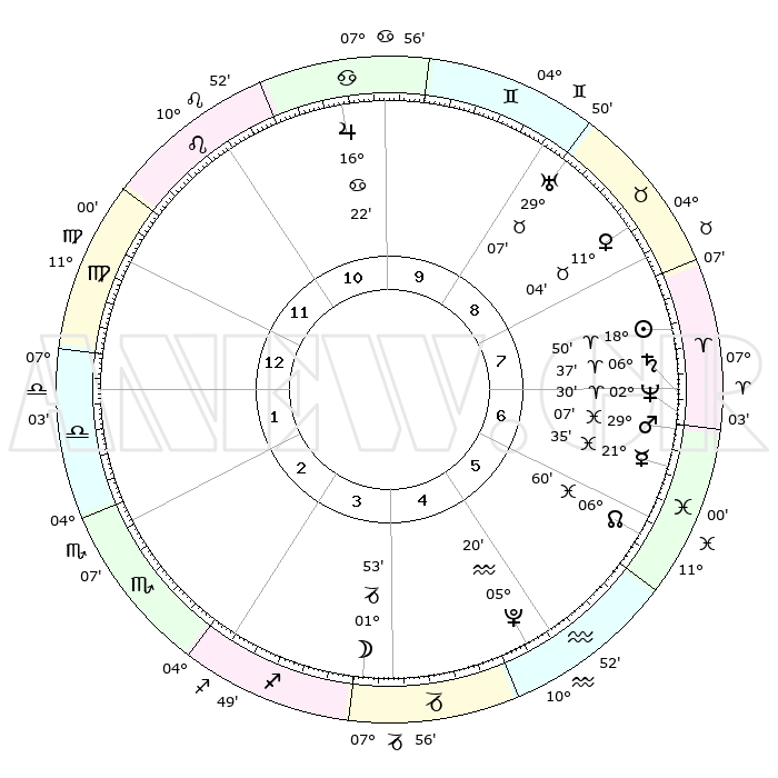 | | ΘΕΣΕΙΣ ΠΛΑΝΗΤΩΝ ΑΣΤΡΟΛΟΓΙΚΟΥ ΧΑΡΤΗ ΤΗΣ ΣΤΙΓΜΗΣ ΑΥΤΗΣ | | | | Πλανήτης | Ζώδιο | Μοίρες | Δεκαήμ. | Σε οίκο | Απόκλιση | | Ακμές των οίκων | | Ηλιος | Κριός | 18°46' | Δεύτερο | 8 | 07 N 21 | | 1ος | 20°16' | Παρθένος | | Σελήνη | Αιγόκερως | 01°13' | Πρώτο | 4 | 28 S 11 | | 2ος | 16°05' | Ζυγός | | Ερμής | Ιχθείς | 21°31' | Τρίτο | 7 | 05 S 25 | | 3ος | 16°06' | Σκορπιός | | Αφροδίτη | Ταύρος | 10°60' | Δεύτερο | 8 | 15 N 01 | | 4ος | 19°02' | Τοξότης | | Αρης | Ιχθείς | 29°04' | Τρίτο | 7 | 01 S 18 | | 5ος | 22°13' | Αιγόκερως | | Δίας | Καρκίνος | 16°22' | Δεύτερο | 10 | 22 N 48 | | 6ος | 23°01' | Υδροχόος | | Κρόνος | Κριός | 06°36' | Πρώτο | 7 | 00 N 40 | | 7ος | 20°16' | Ιχθείς | | Ουρανός | Ταύρος | 29°07' | Τρίτο | 9 | 19 N 47 | | 8ος | 16°05' | Κριός | | Ποσειδώνας | Κριός | 02°30' | Πρώτο | 7 | 00 S 13 | | 9ος | 16°06' | Ταύρος | | Πλούτωνας | Υδροχόος | 05°20' | Πρώτο | 5 | 22 S 47 | | 10ος | 19°02' | Δίδυμοι | | Β. Δεσμός | Ιχθείς | 07°00' | Πρώτο | 6 | 08 S 56 | | 11ος | 22°13' | Καρκίνος | | Ωροσκόπος | Παρθένος | 20°16' | Τρίτο | | | 12ος | 23°01' | Λέων | | Μεσουράνημα | Δίδυμοι | 19°02' | Δεύτερο | | | |